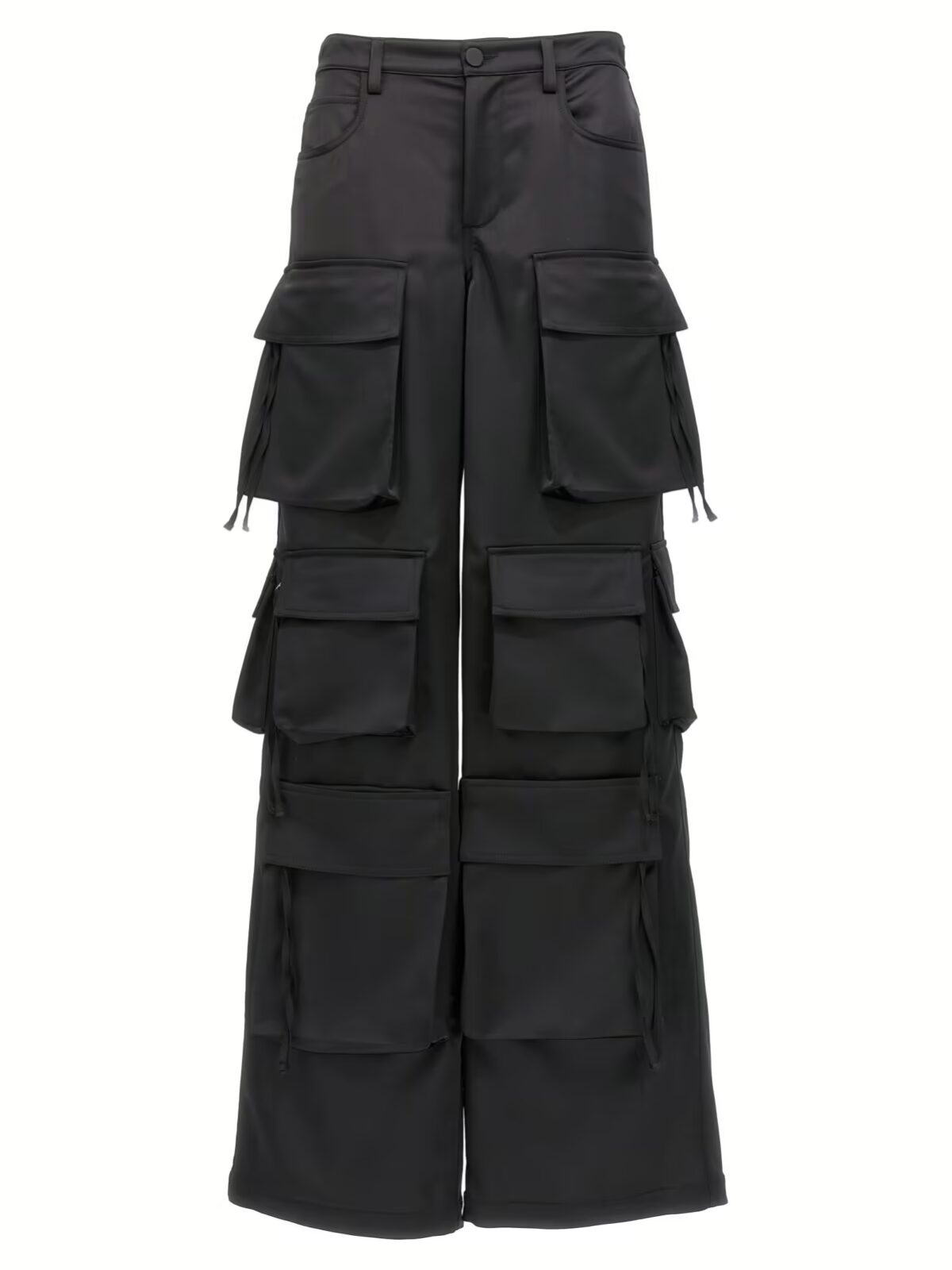 Штани Cargo Giuseppe Di Morabito в чорному кольорі – це штани зі сатинової тканини з максимальною кількістю кишень, широкими штанинами та звичайною посадкою на талії.