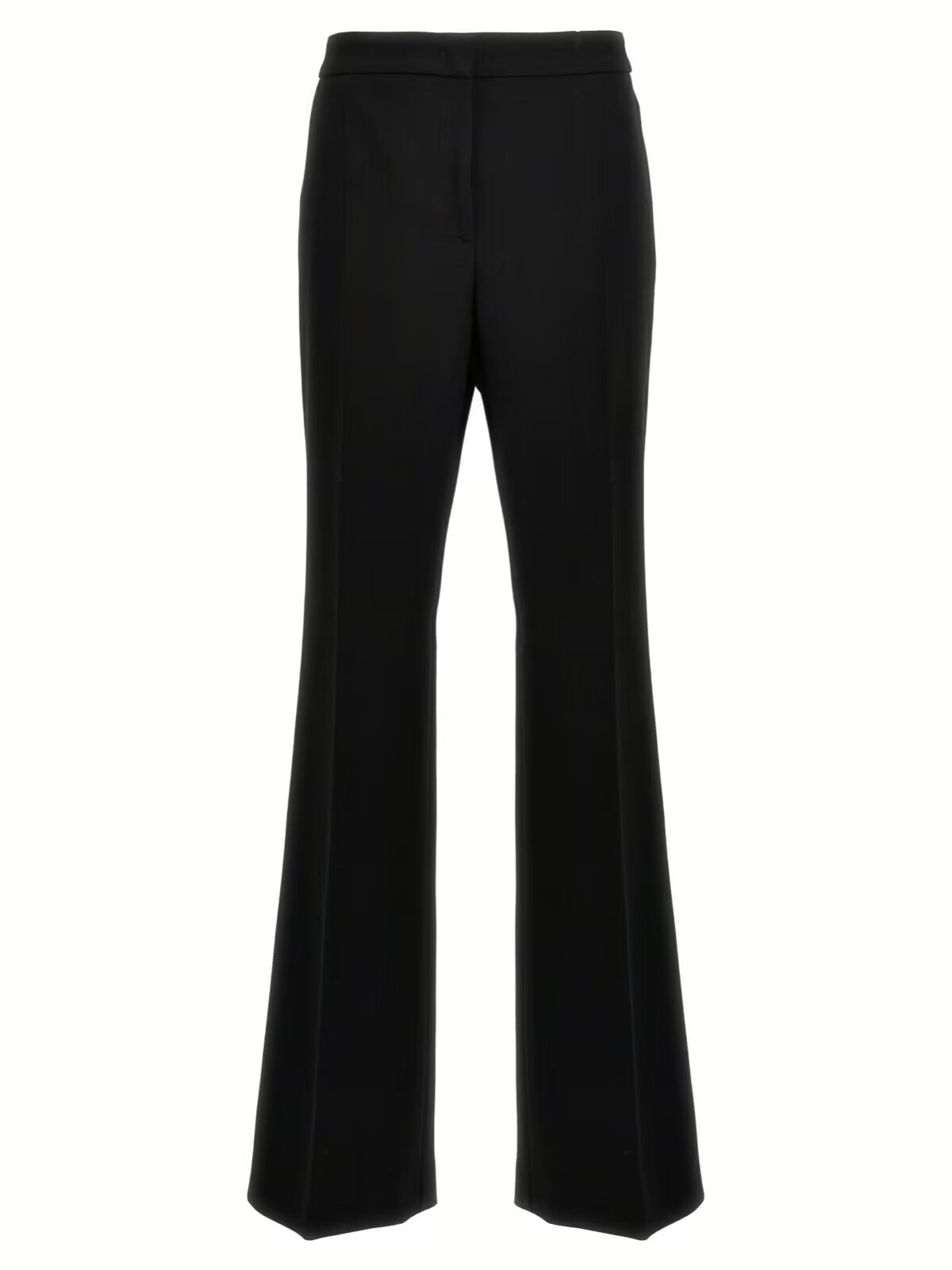 Завдяки широкому крою з центральним складом та кишенями, ці штани з вовняно-крепової суміші від Moschino стануть незамінним елементом вашого гардеробу. Вони виглядають надзвичайно стильно та елегантно, а завдяки чорному кольору легко поєднуються з будь-яким верхом. Застібка на гачок та кнопку забезпечує зручність і надійність, а широкі штани додають образу жіночності та грації. Виготовлені з 63% віскози, 35% вовни та 2% еластану, ці штани забезпечать вам комфорт протягом усього дня. Не втрачайте можливість придбати цей неперевершений елемент одягу, який підкреслить вашу індивідуальність та стиль. Замовляйте вже зараз!