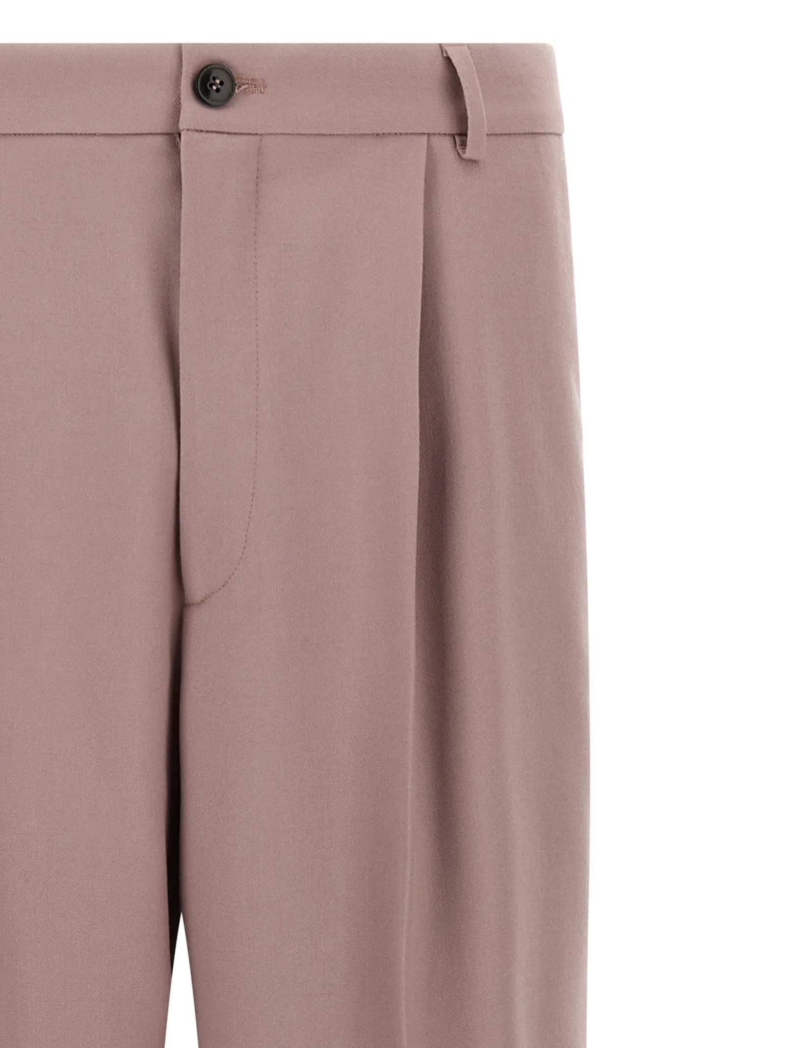 Рожеві чоловічі штани з колекції Penrud виготовлені із 100% вовни найвищої якості, що забезпечує комфорт і довговічність. Вишуканий дизайн із защипами, широкими прямими штанинами та елегантною застібкою підкреслює стиль і статус, роблячи цей виріб ідеальним вибором для впевнених у собі поціновувачів моди.