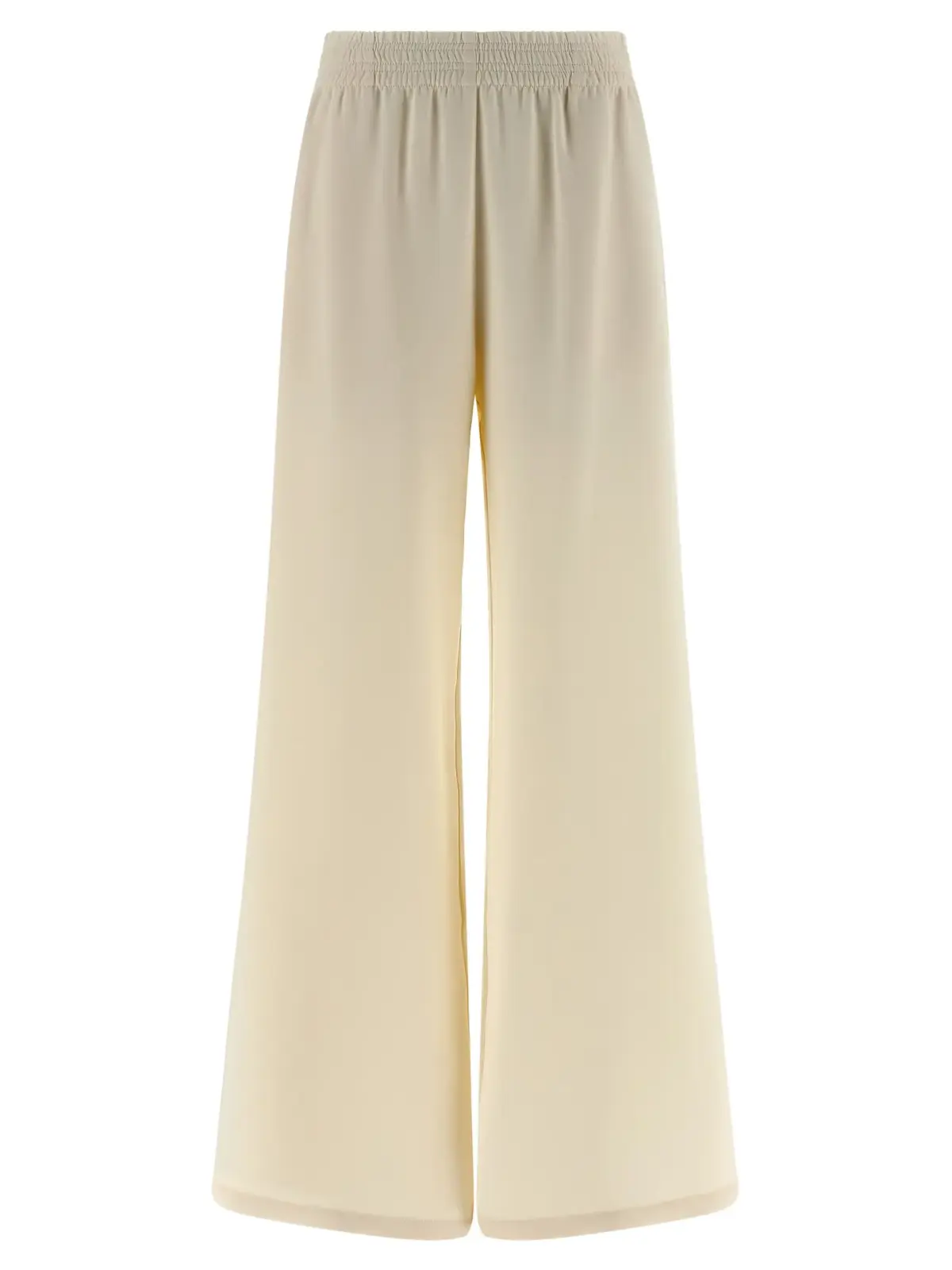 Вишукані білі жіночі штани Fabiana Filippi у стилі палаццо виготовлені з якісного щільного матеріалу на основі ацетату та віскози, забезпечуючи комфорт і дихаючість. Висока талія з еластичною вставкою та практичні бокові кишені додають універсальності, підкреслюючи елегантність і статус власниці.