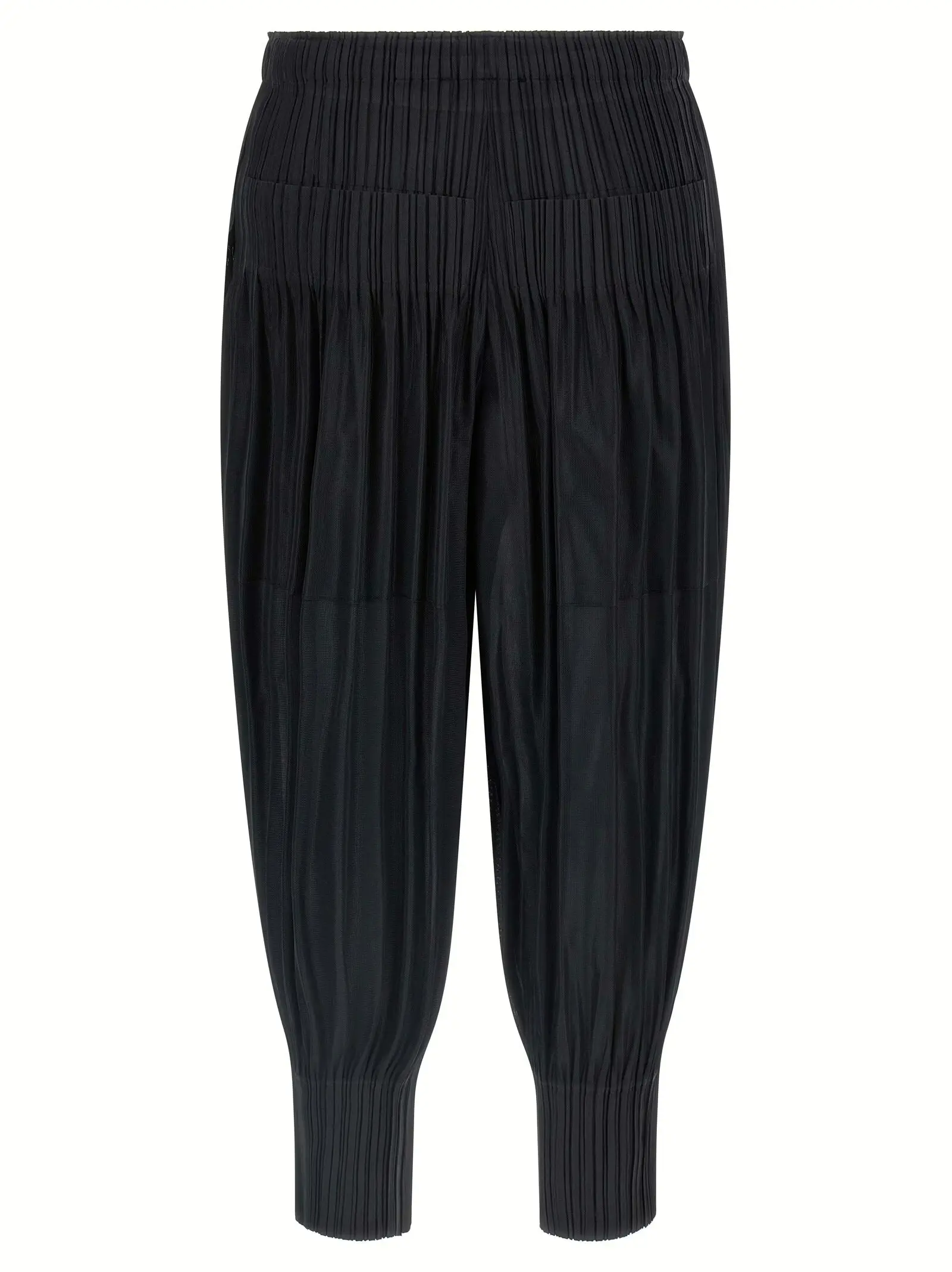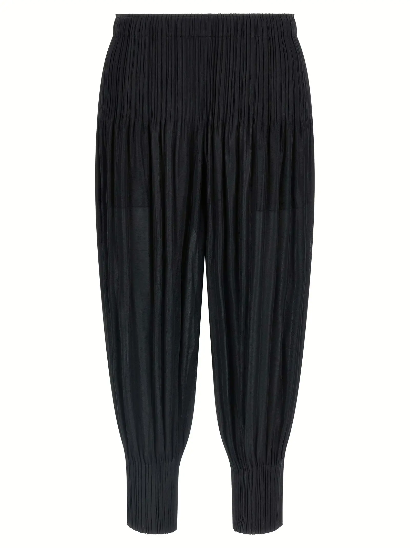 Елегантні жіночі штани чорного кольору з колекції Fluffy Basics від Pleats Please Issey Miyake вирізняються унікальним плісированим дизайном і актуальним кроєм крок. Виготовлені з високоякісного поліестеру, вони поєднують комфорт, інноваційність та універсальність, підкреслюючи статус і вишуканий стиль сучасної модниці.