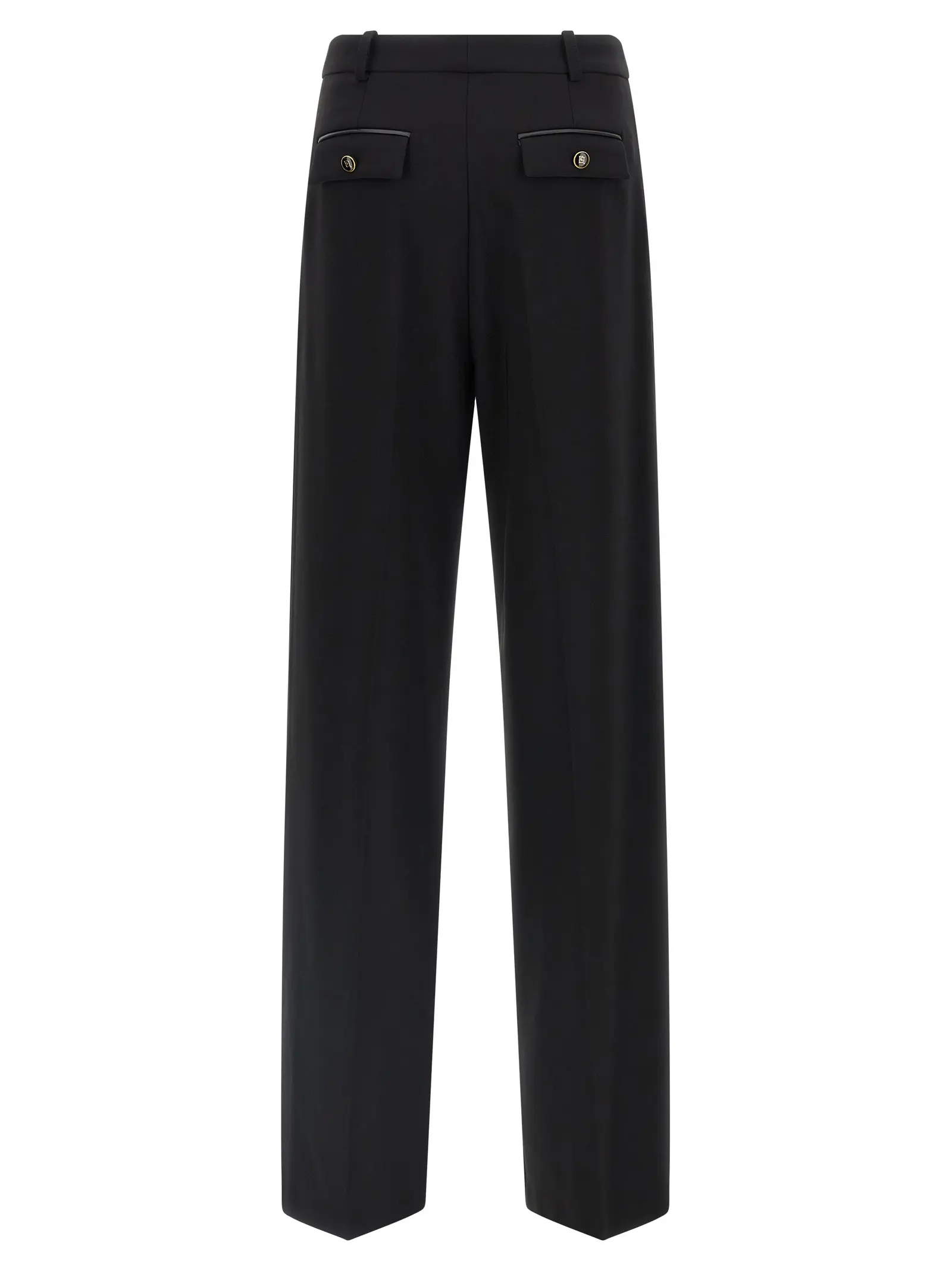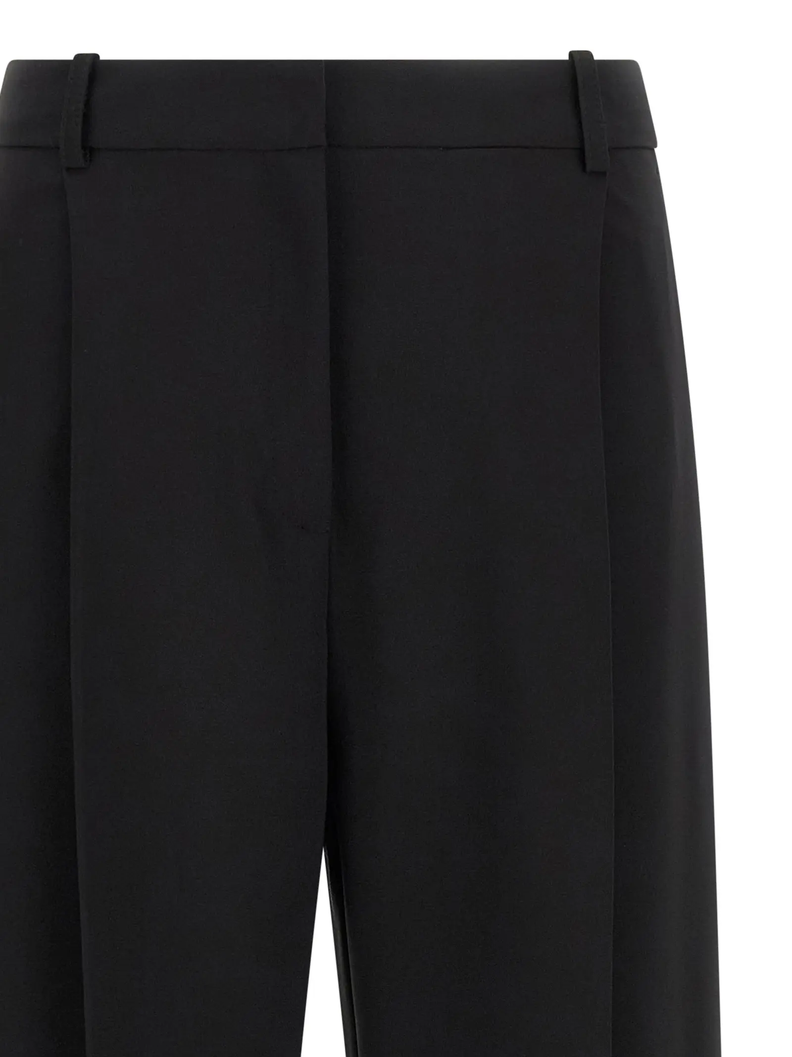 Чорні жіночі штани Fluid cady виготовлені з високоякісного поєднання поліестеру та еластану, що забезпечує ідеальну посадку та комфорт. Широкий прямий крій із елегантними складками і пінсами підкреслює сучасний силует, а практичні кишені та надійна застібка додають функціональності. Цей витончений виріб втілює бездоганний стиль і статус, гармонійно поєднуючись із будь-яким гардеробом.