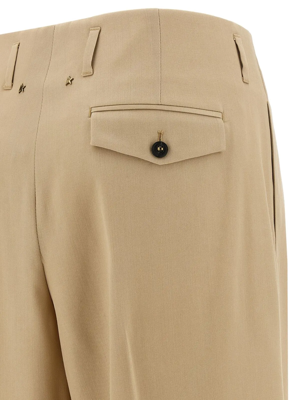 Жіночі штани Flavia з 100% натуральної вовни преміум якості вирізняються вишуканим дизайном із широкими штанинами, витонченими складками та зручними кишенями. Елегантна застібка на блискавку та гачок підкреслюють функціональність, а вінтажний металевий логотип додає неповторного статусу й стилю.