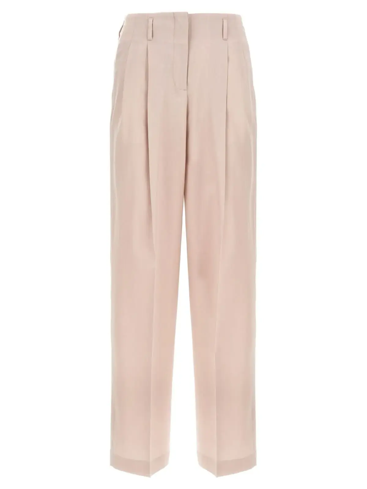 Рожеві жіночі штани з 100% новозернової вовни поєднують в собі вишуканий дизайн із широкими штанинами, акуратними плісе та практичними кишенями, забезпечуючи комфорт і стиль. Висока якість матеріалів і продумана функціональність підкреслюють статус і елегантність образу.