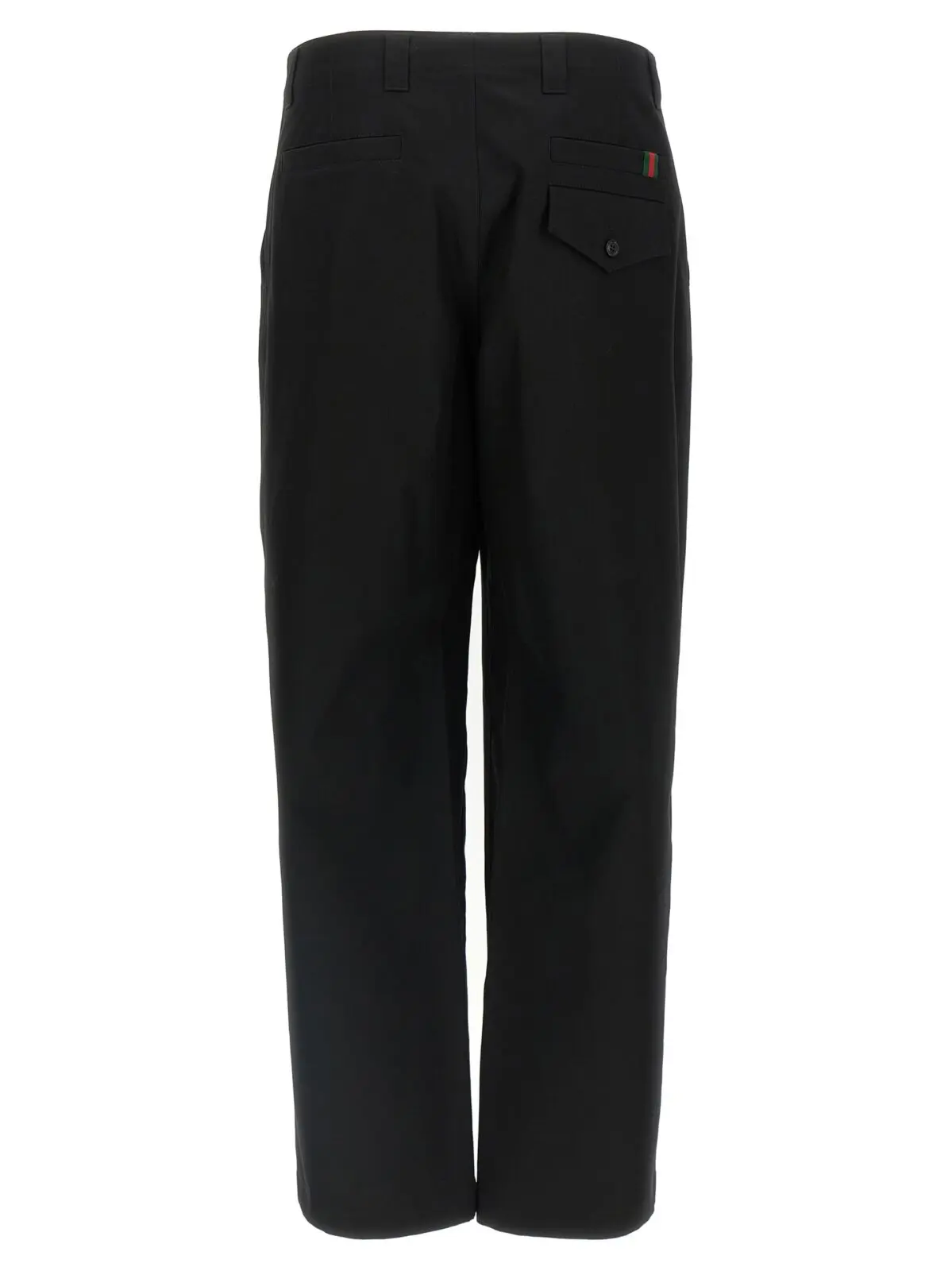 Чорні чоловічі штани з 100% бавовни, виконані з високоякісного твілового матеріалу, поєднують класичний широкий прямий крій із сучасною деталлю у вигляді стрічки на спині. Вишуканий дизайн і функціональність забезпечують неповторний стиль і статус, підкреслюючи інноваційність та універсальність образу.