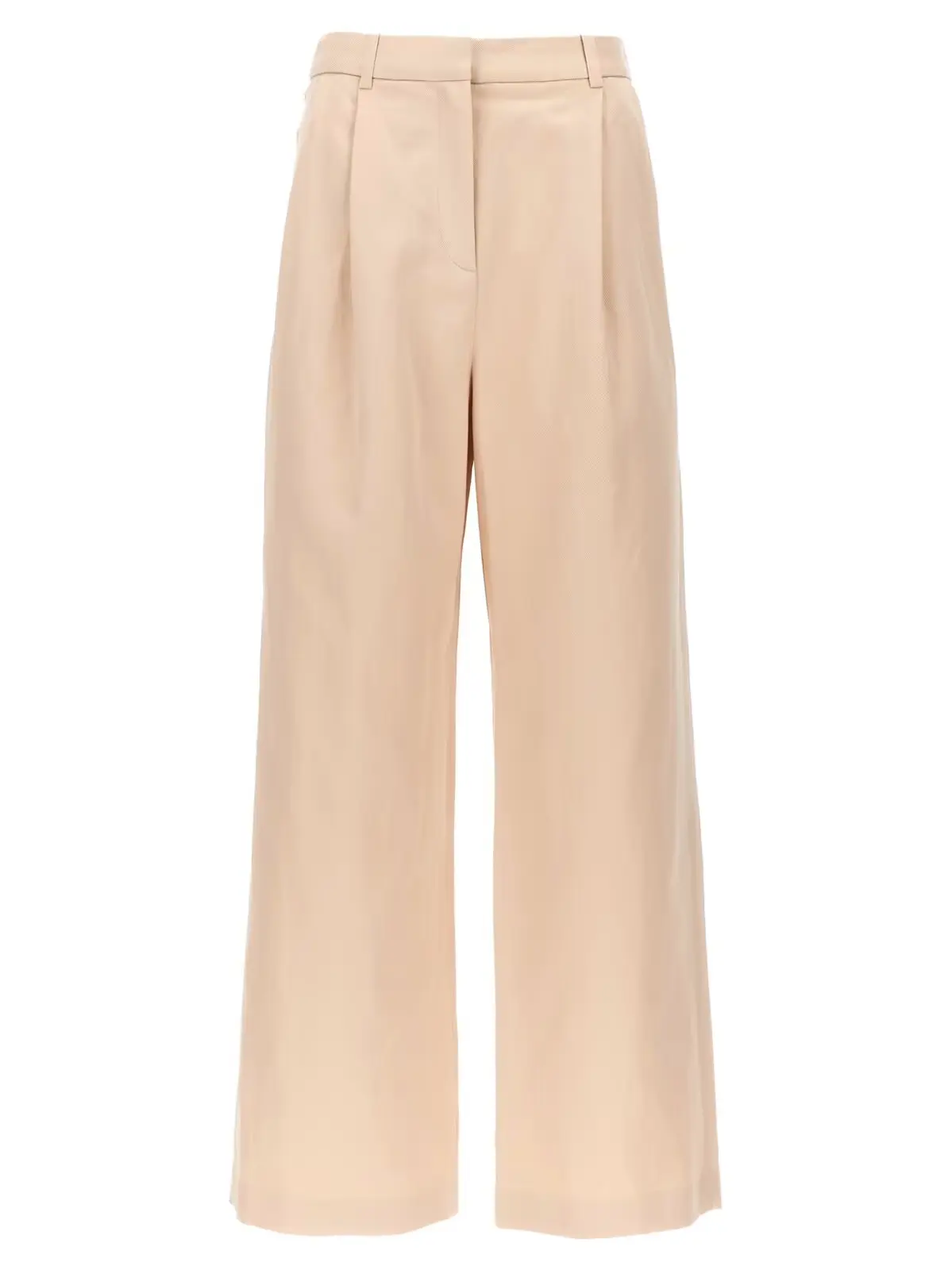 Штани Idai від Loulou Studio – це рожеві жіночі штани зі змішаного складу бавовни та льону. Вони мають широкі штанини зі складками, кишені, застібку на блискавку, гачок та ґудзик. Склад тканини: 61% бавовна, 39% льон.