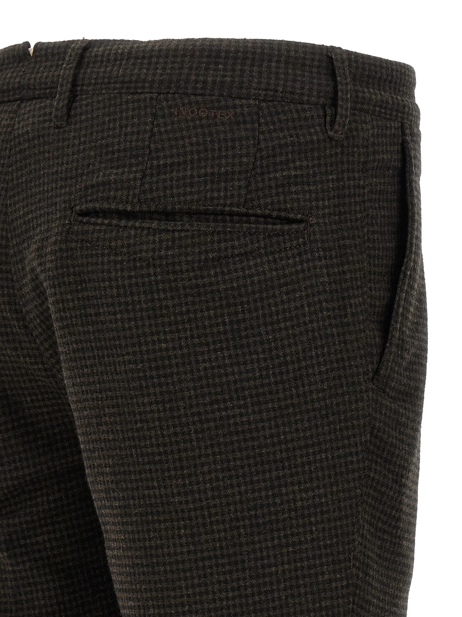 Чоловічі штани з коричневої вовни преміум-класу, виконані з інноваційної суміші вовни, поліестеру та еластану, поєднують комфорт і довговічність. Елегантний дизайн з витонченим візерунком, прямим кроєм і зручними деталями підкреслює статус і бездоганний стиль у будь-якій ситуації.