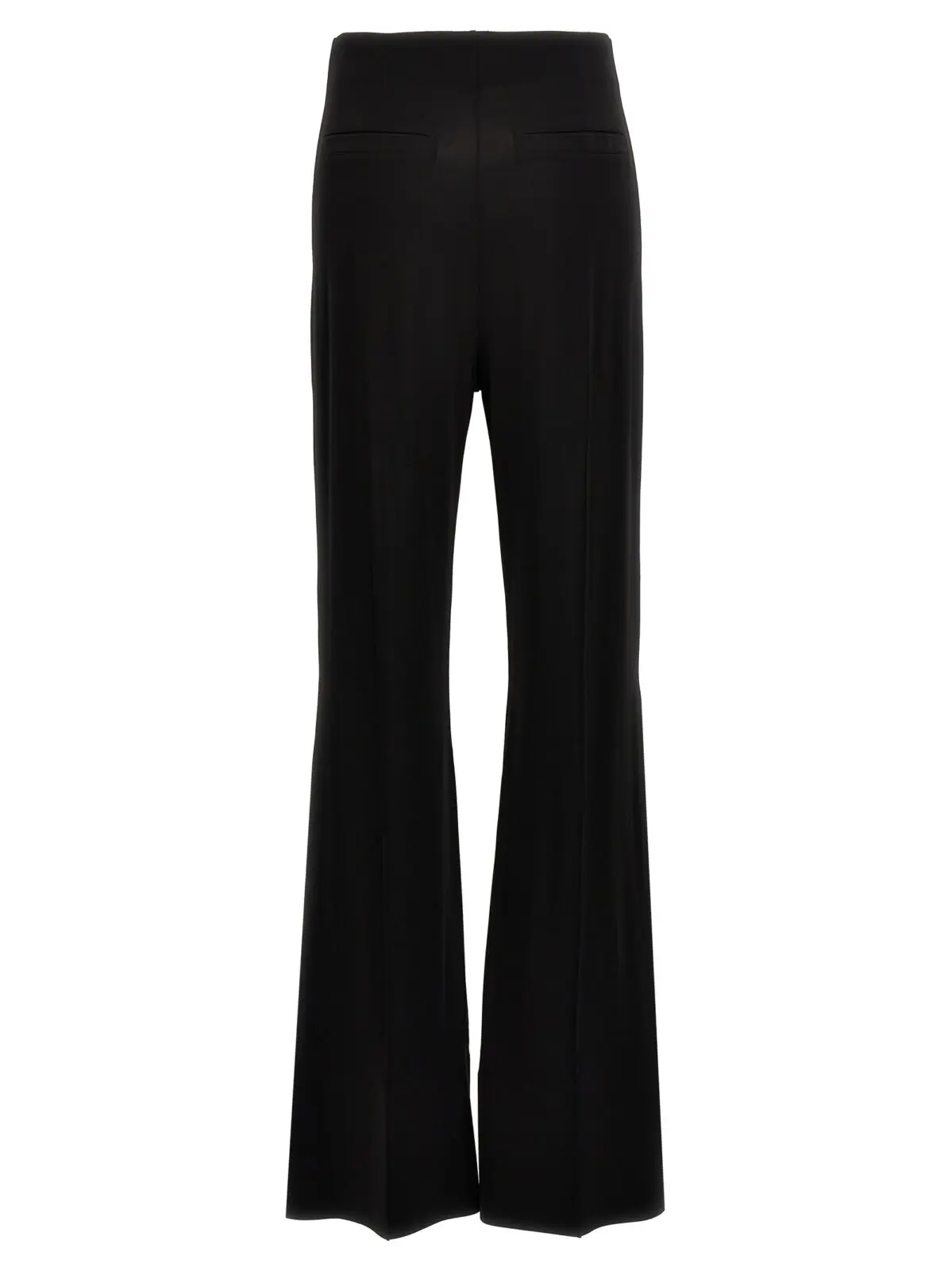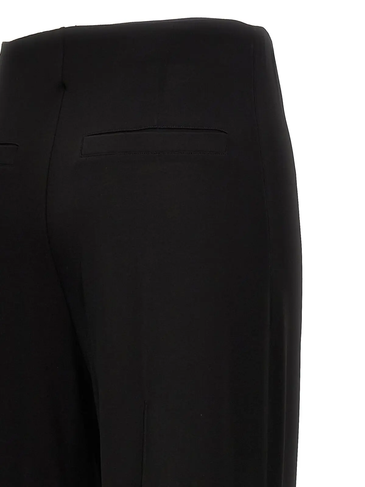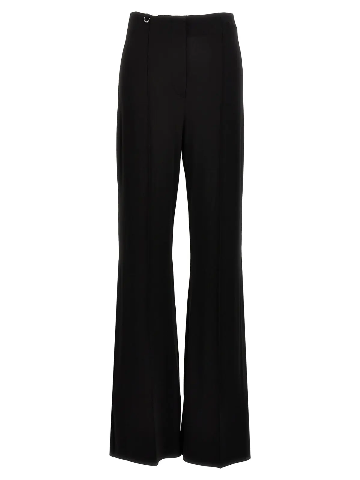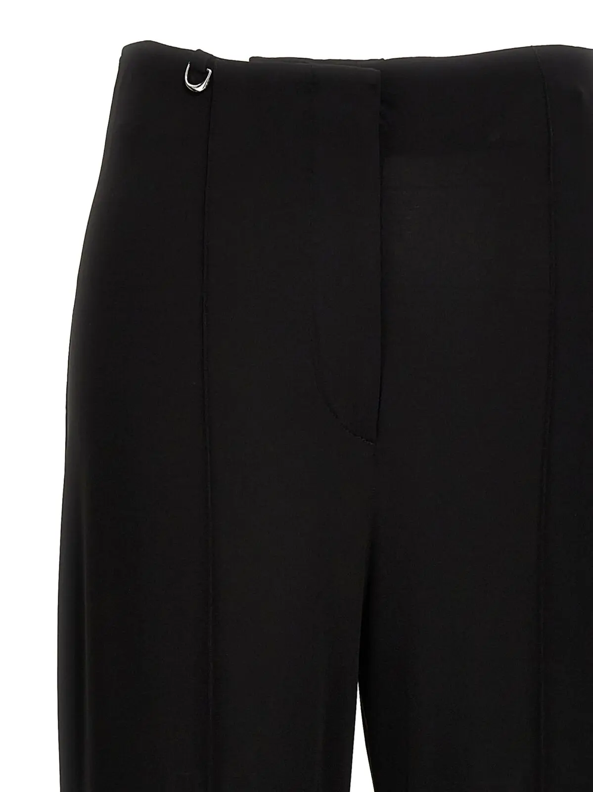 Елегантні жіночі штани Jacquemus моделі ‘Apollo’ в чорному кольорі виготовлені з еластичної тканини. Висока талія, вузький крій з розширеними низами штанин. Застібаються на блискавку, гачок та кнопку. Склад: 75% ацетату, 20% поліаміду, 5% еластану.