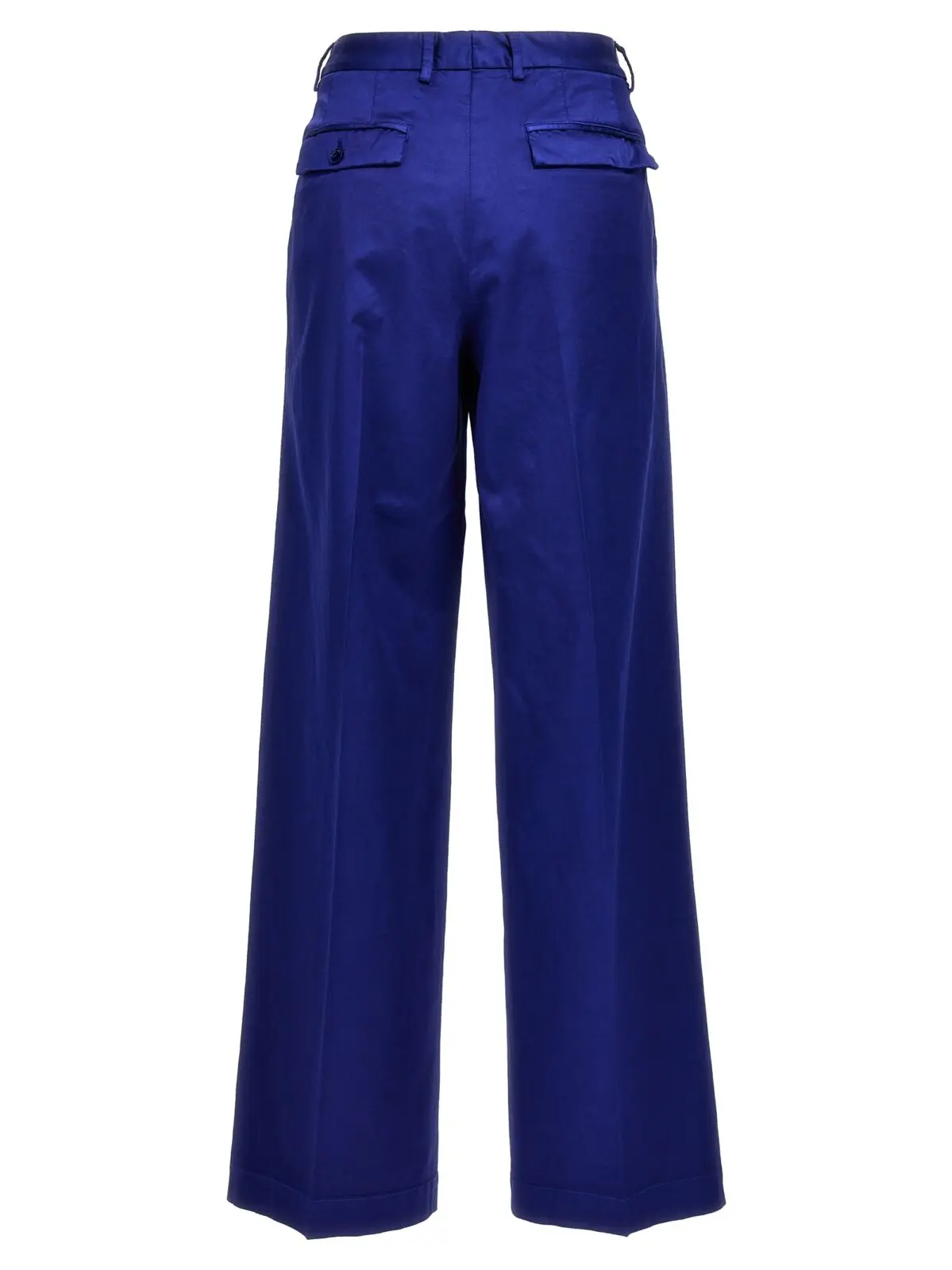 Жіночі сині штани Jonap Cellar Door виготовлені з еластичної віскозно-бавовняної суміші. Модель має широкі штанини з центральною складкою та застібається на блискавку та гачок. Склад тканини: 59% бавовна, 37% віскоза, 4% еластан.