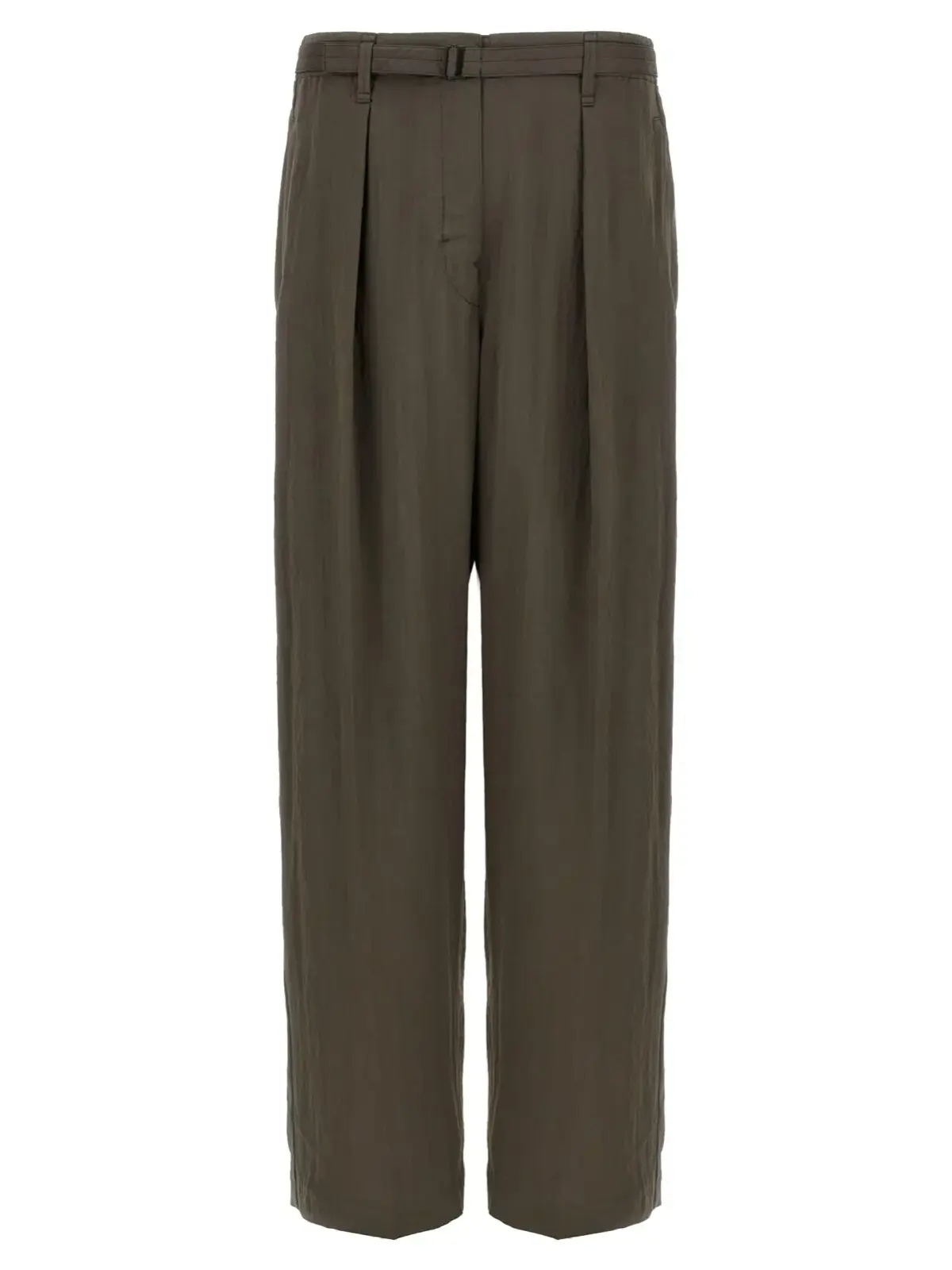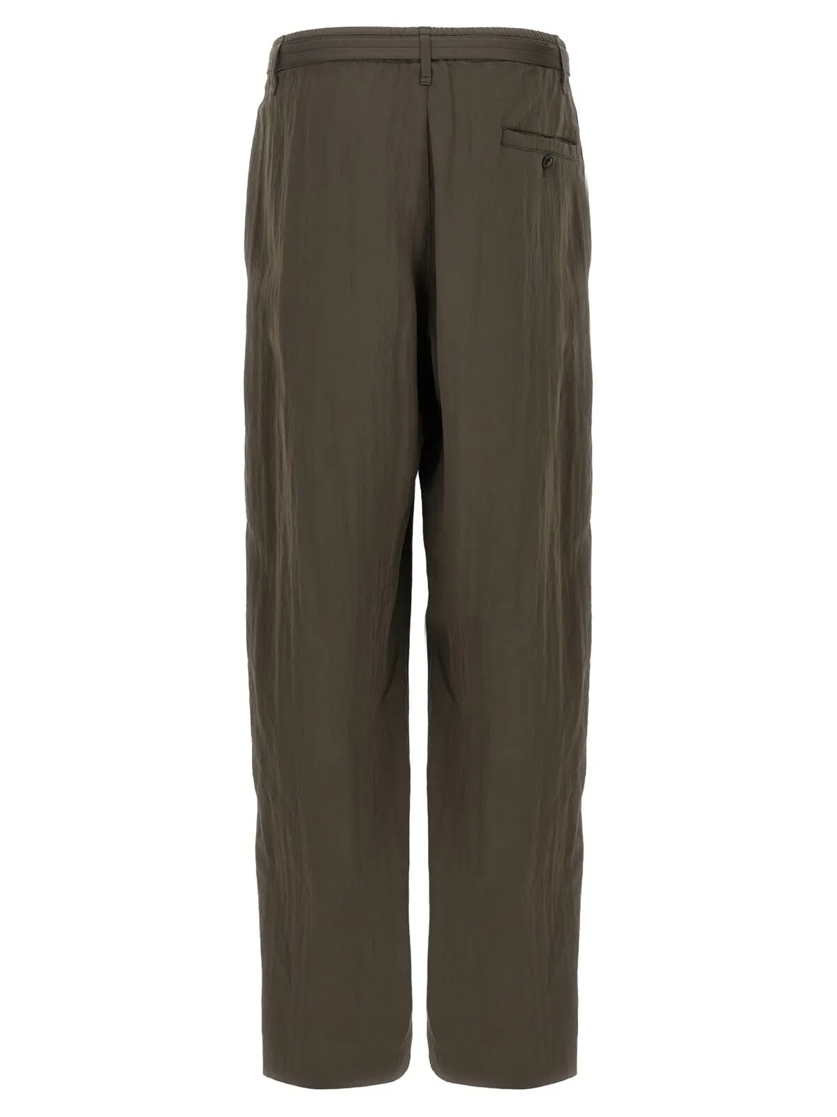 Чоловічі штани Lemaire виконані з вишуканої віскози з додаванням поліестеру, що забезпечує комфорт і довговічність. Модель із заниженою лінією кроку, прямими штанинами з передніми складками та регульованим еластичним поясом із ременем і пряжкою поєднує стиль і функціональність, підкреслюючи статус і витонченість сучасного образу.
