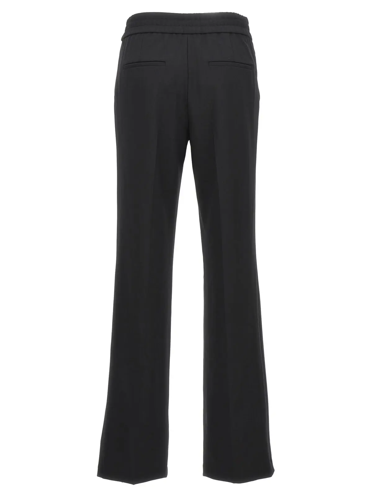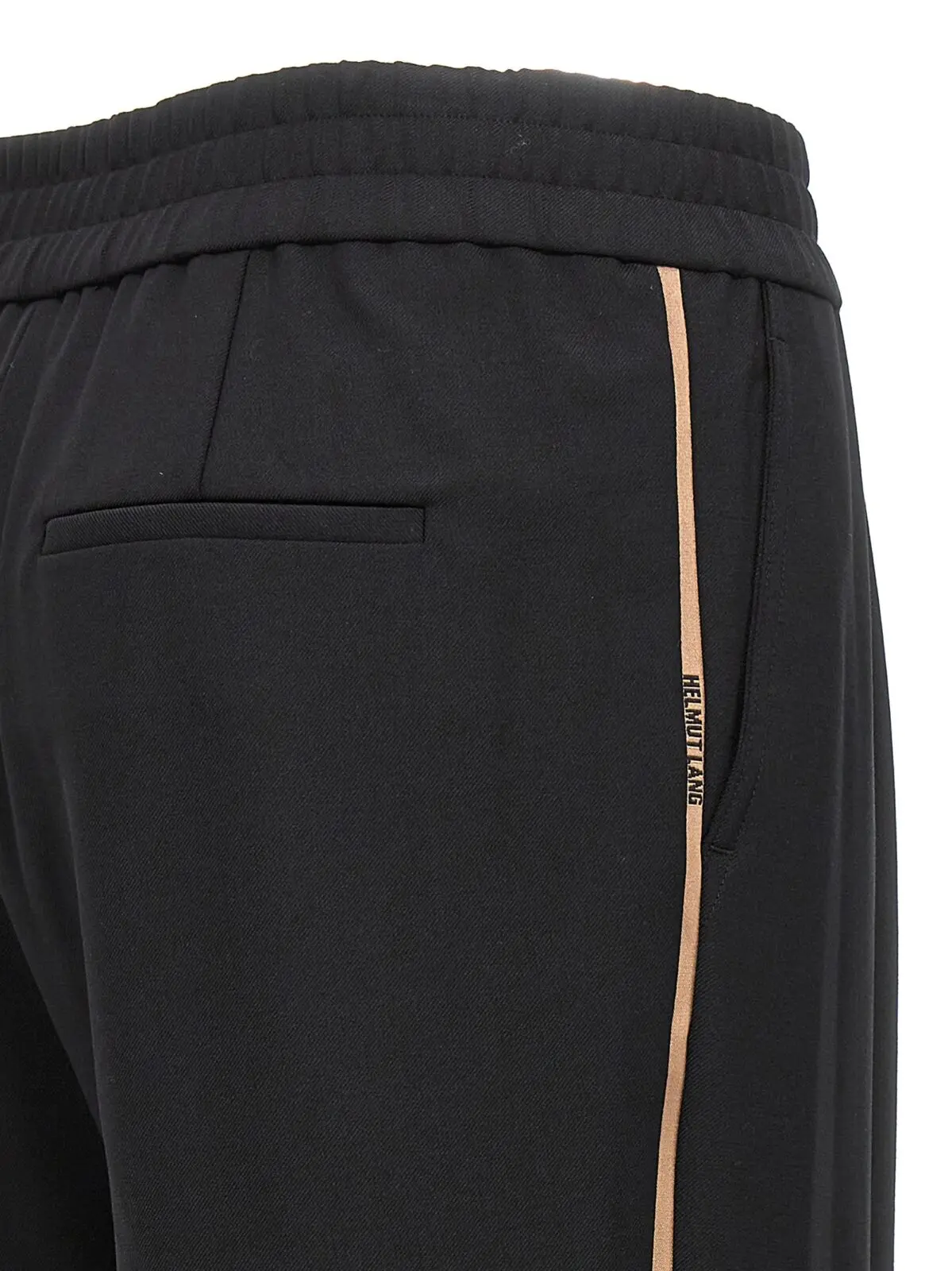 Завдяки штанам Logo band від Helmut Lang ви зможете поєднати комфорт і стиль в одному образі. Ці штани з вовняно-синтетичної суміші мають контрастну бічну логотипну стрічку, еластичний пояс, кишені та штанину з центральним складом.