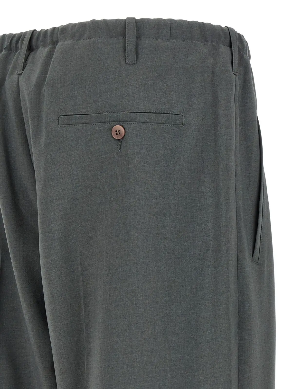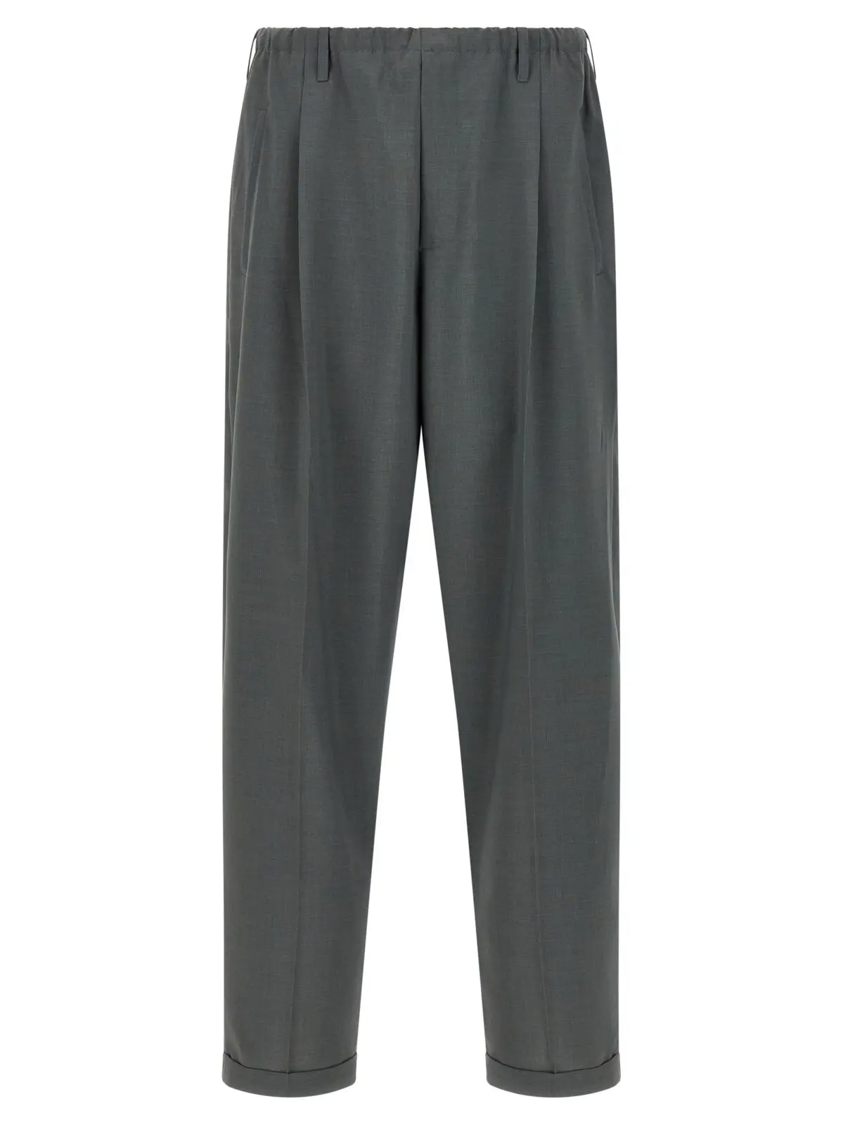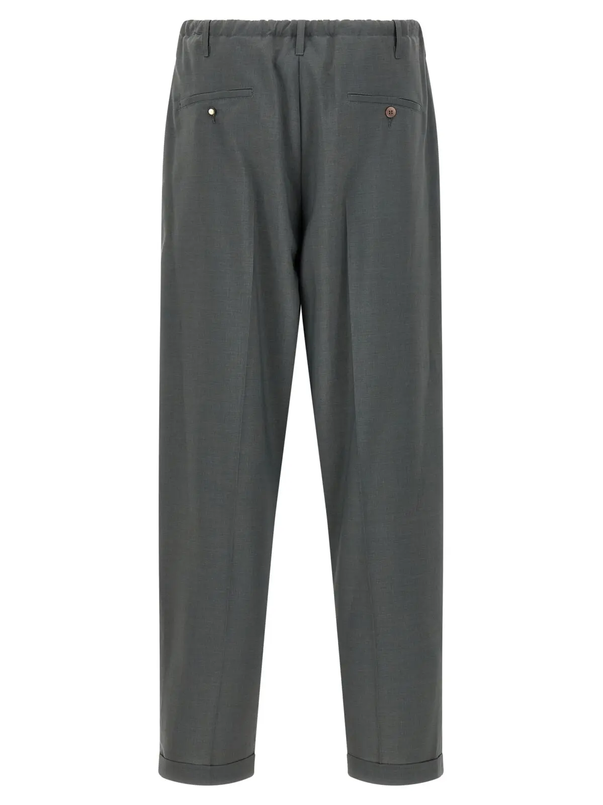 Сірі чоловічі штани Magliano People’s Pant вирізняються елегантним класичним кроєм із витягнутими передніми складками та підворотом, виконані з високоякісного поліестеру. Вони поєднують комфорт завдяки еластичному поясу з регульованим шнурком та функціональність завдяки практичним кишеням і надійній застібці на блискавку, підкреслюючи бездоганний стиль і статус.