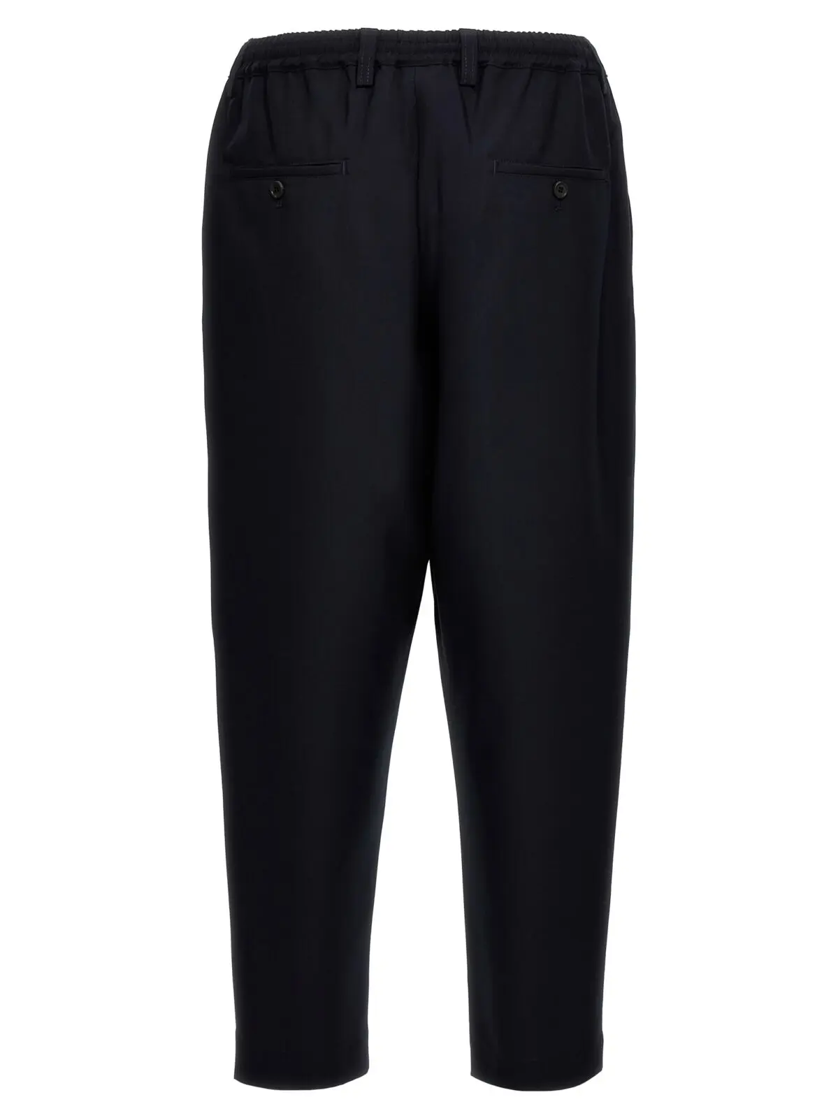Чоловічі сині штани Marni, виконані з тропічної вовни, поєднують в собі елегантність та комфорт. Виріб має зручну еластичну талію, закривається на гудзики та оснащений кишенями для додаткової практичності. Штани виконані у кроп-стилі, що додає їм сучасного вигляду. Матеріал виробу – 100% натуральна вовна, що забезпечує високий рівень комфорту та теплоти.