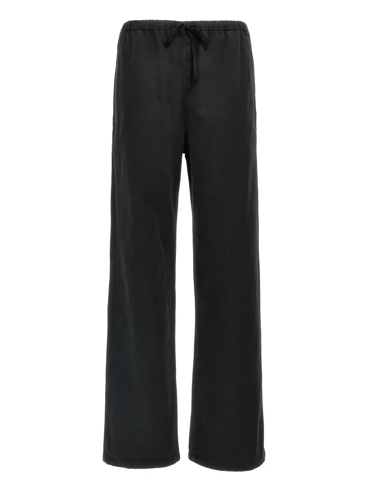 Чорні штани з колекції Maison Margiela виготовлені з високоякісної бавовни Delavé, що забезпечує комфорт і довговічність. Регульований шнурок на талії, кишені та широкий прямий крій поєднують практичність і стиль, підкреслюючи сучасний статус і вишуканий смак власниці.