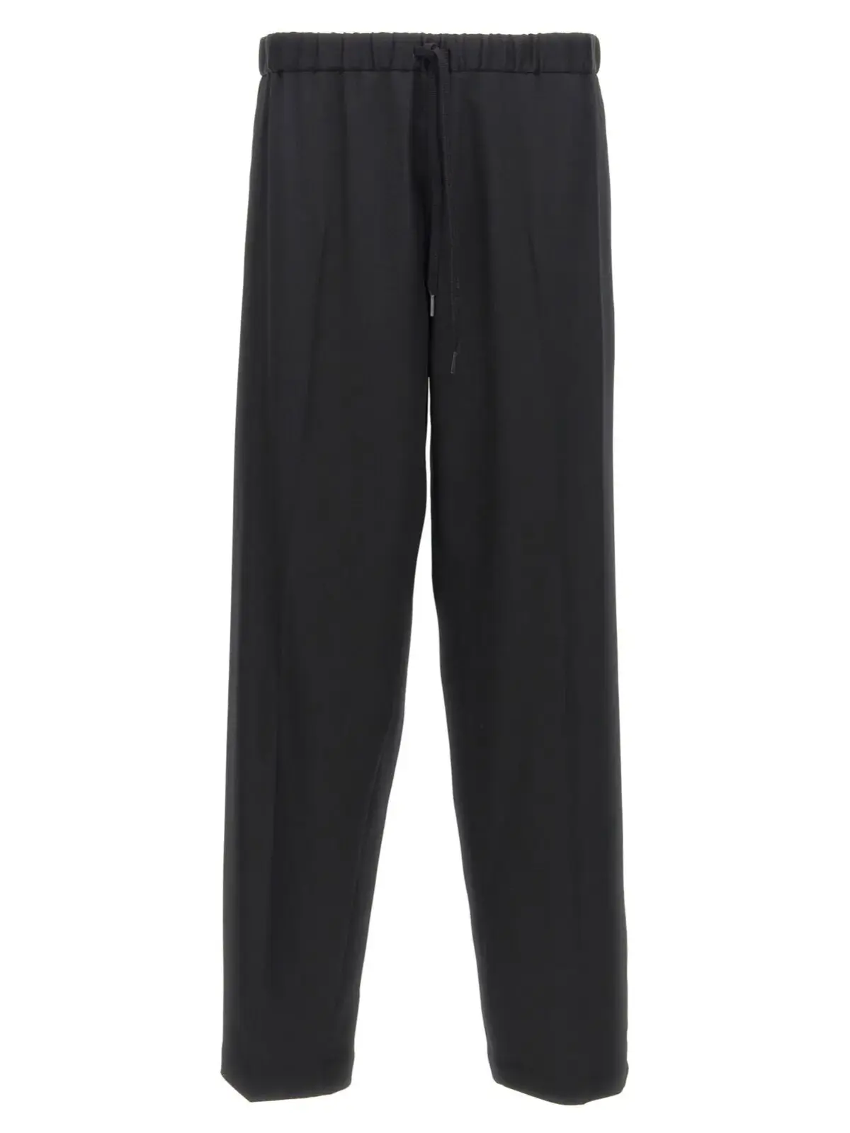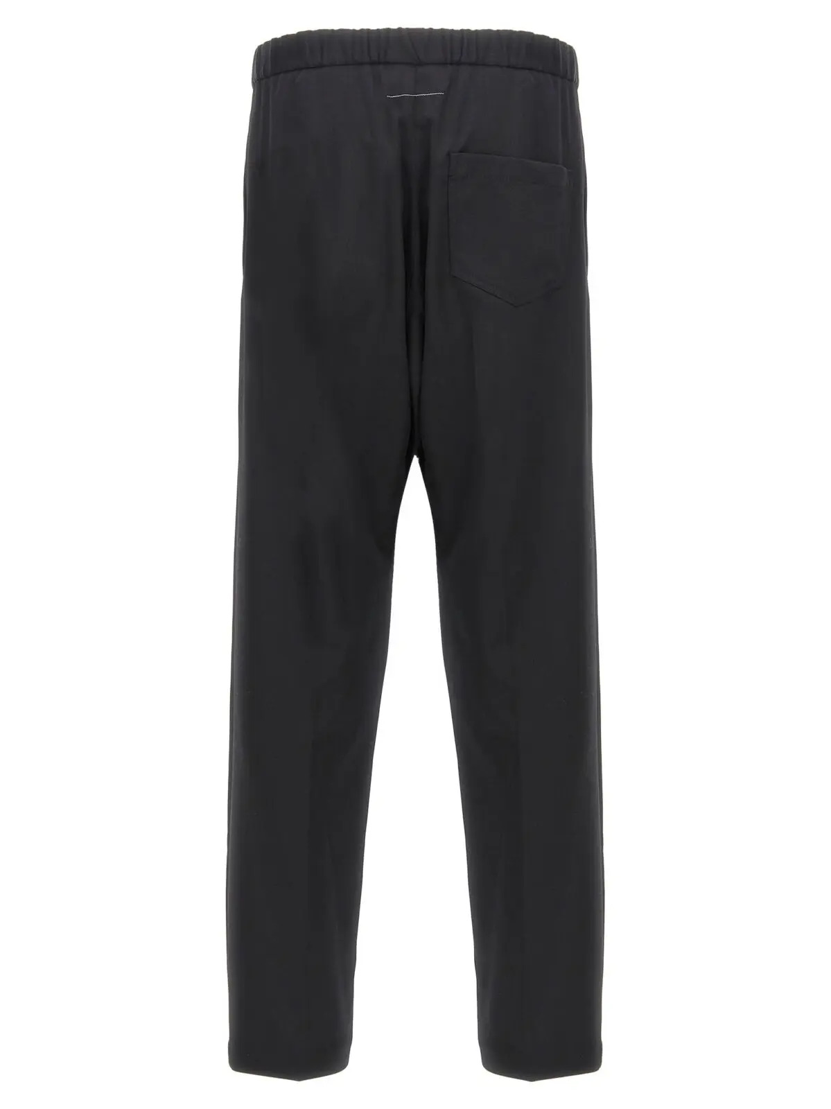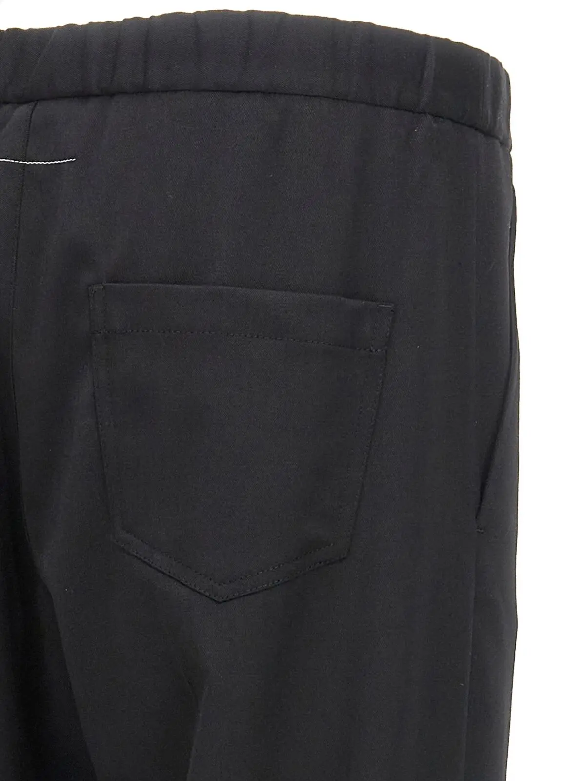 Чорні чоловічі штани Mm6 Maison Margiela виготовлені з високоякісної суміші вовни, що забезпечує комфорт та елегантність. Прямий крій з розтягнутими складками підкреслює сучасний стиль, а регульований еластичний пояс забезпечує ідеальну посадку. Практичні кишені і характерна задня біла строчка додають завершеності образу. Цей виріб втілює інноваційний підхід до класичного дизайну, що робить його універсальним вибором для будь-якої нагоди.