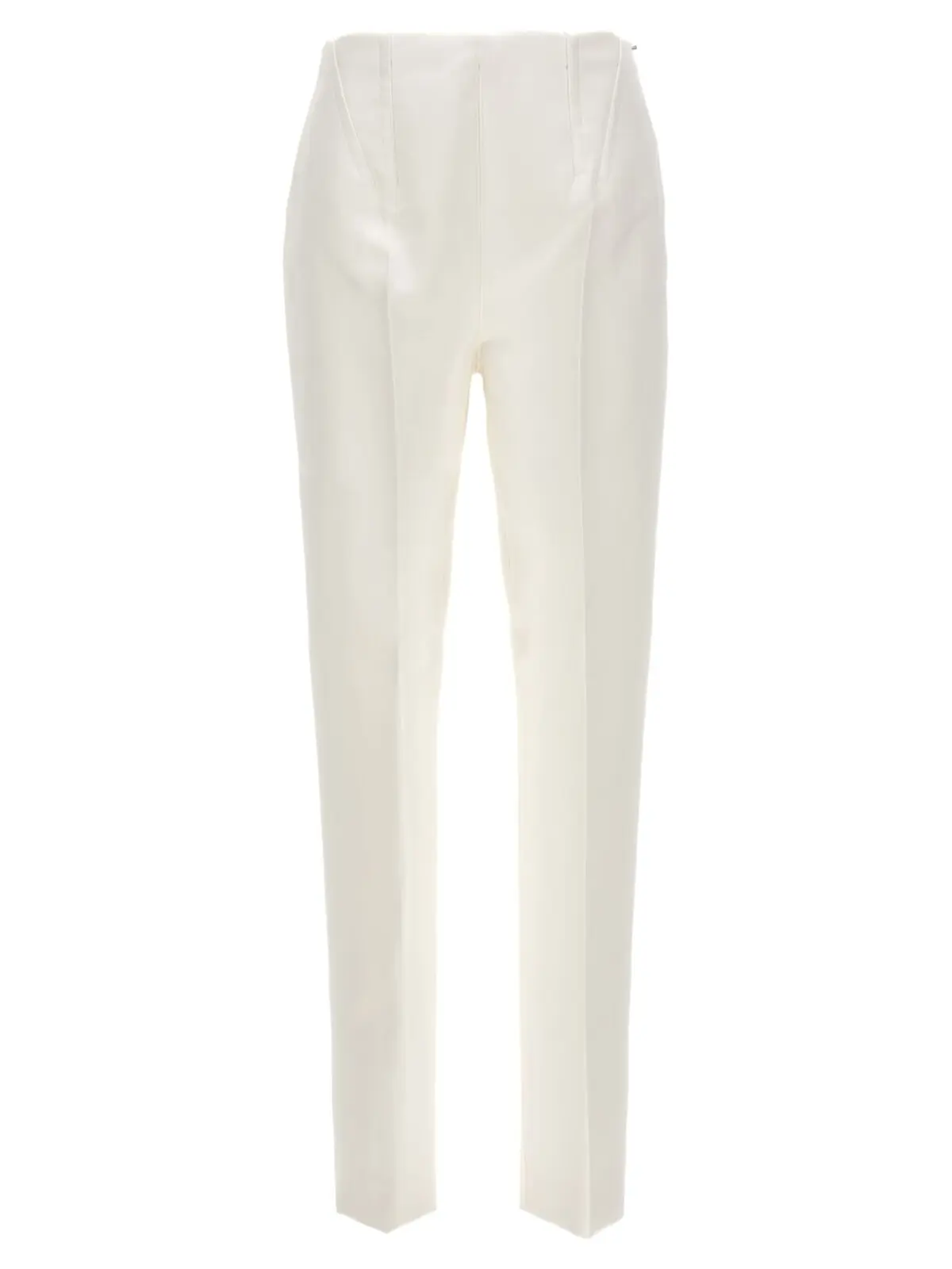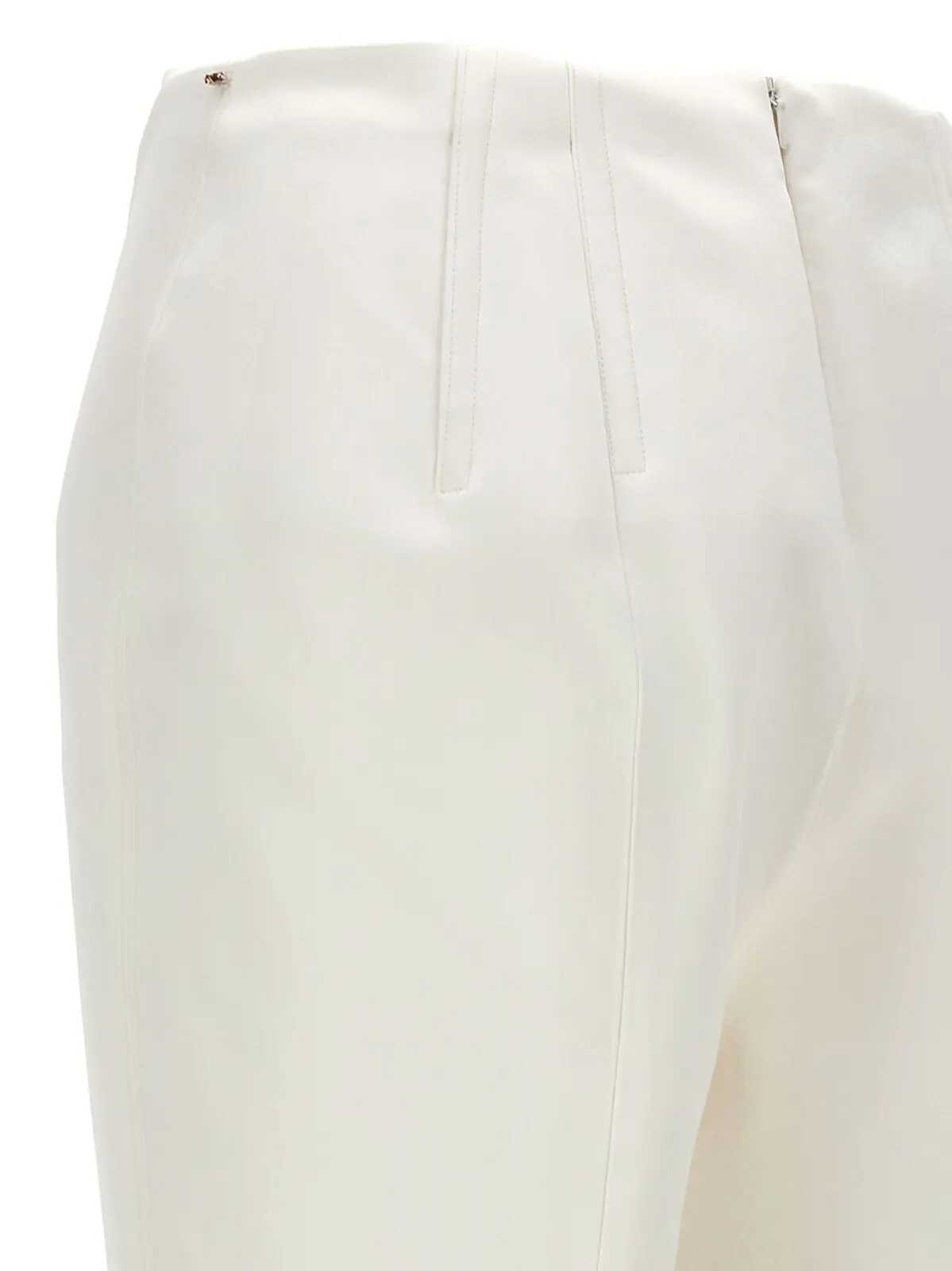 Елегантні жіночі штани ‘Netto’ від Sportmax виконані з щільного атласу на основі акетату. Модель має посилений пояс з вшитими внутрішніми шинами, замок-блискавку ззаду та деталь з блискавкою на нижньому краї штанини. Низька талія підкреслює фігуру. Матеріал: 100% акетат.