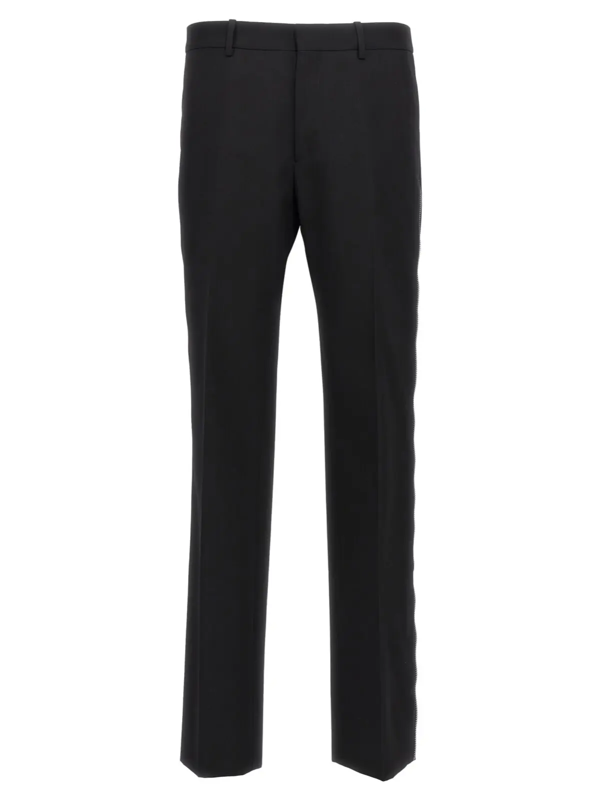 Чорні чоловічі штани OW Emb від Off-White з деталями з блискавками по боках ноги, кишенями, застібкою на гачок і гудзик та вишивкою логотипу.