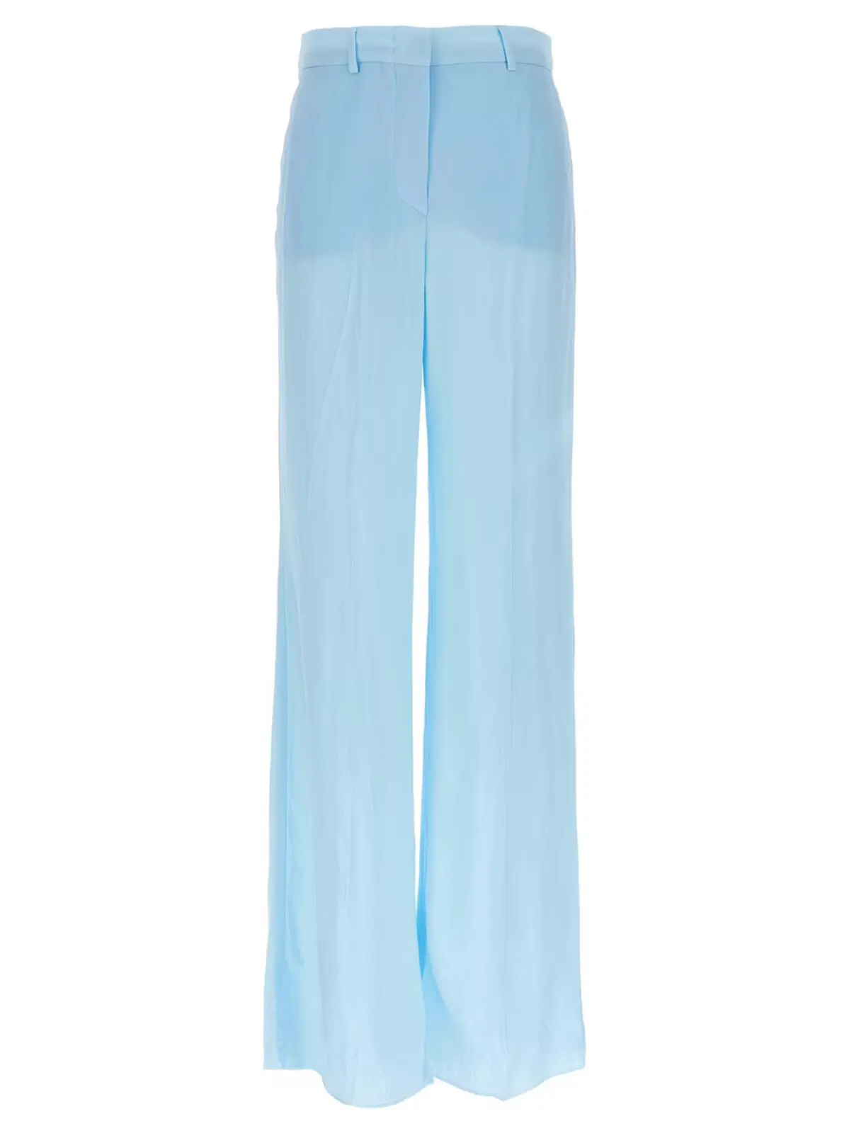 Штани Persia Sportmax відтінку блакитного кольору з ефектом переробки з віскози з застібкою на блискавку, гачком і ґудзиком, а також кишенями. Виготовлені з 100% віскози.