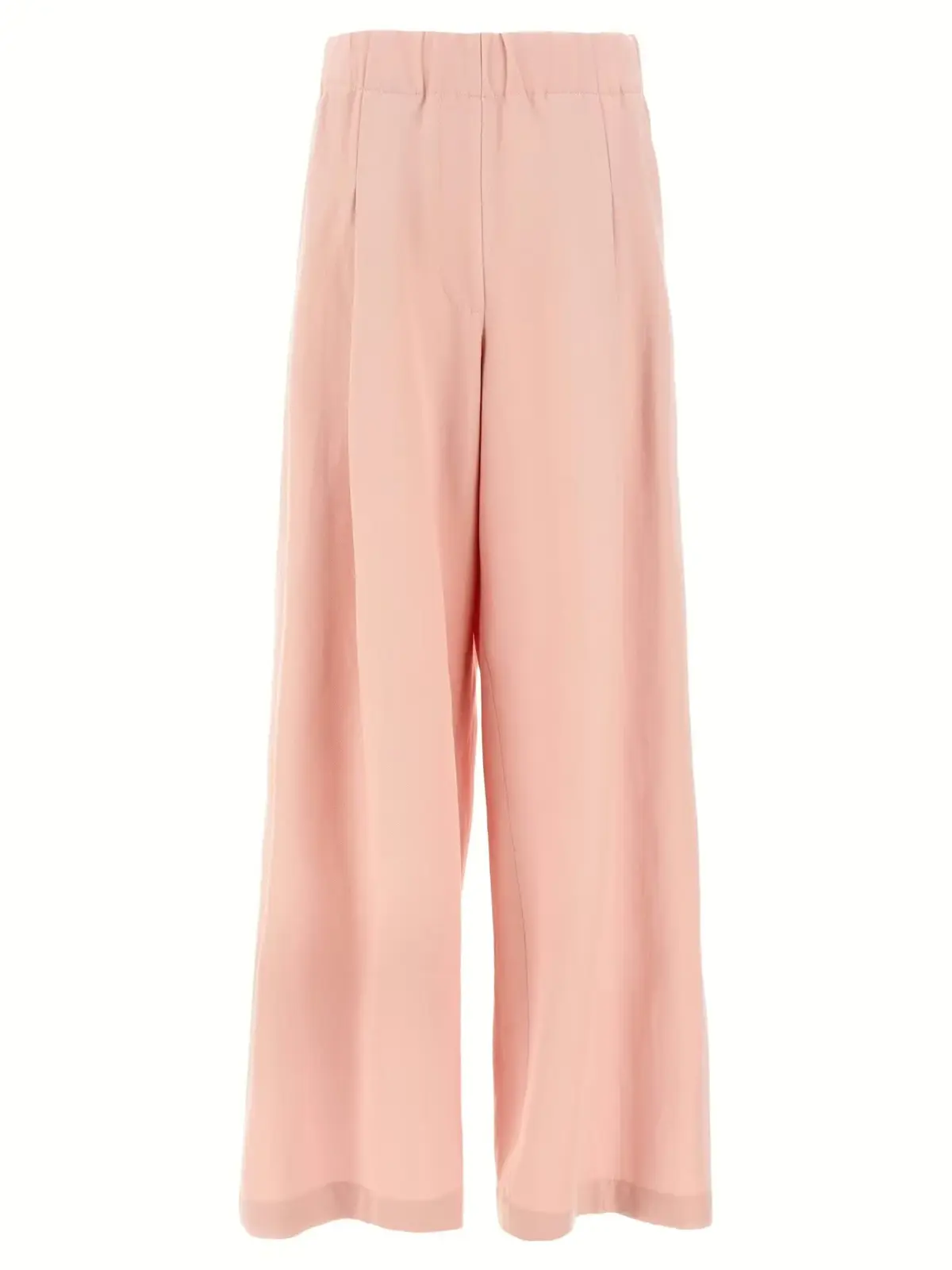 Рожеві жіночі штани Pila виготовлені з високоякісної вовняної суміші, що забезпечує комфорт і довговічність. Вільний крій, елегантні складки та еластичний пояс із зав’язками поєднують стиль і функціональність, підкреслюючи вишуканий образ сучасної жінки з неповторним почуттям моди.