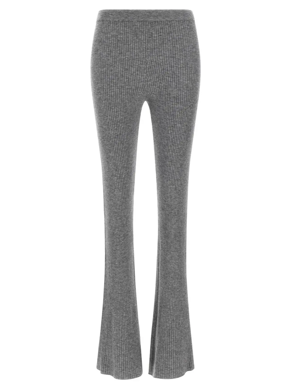 Ці жіночі штани з ультратонкої ребристої вовни сірого кольору поєднують в собі вишуканість і інноваційний дизайн завдяки всесвітньому декору з паєток, розширеному крою та еластичному поясу для ідеальної посадки, підкреслюючи статус і стиль у кожному образі.