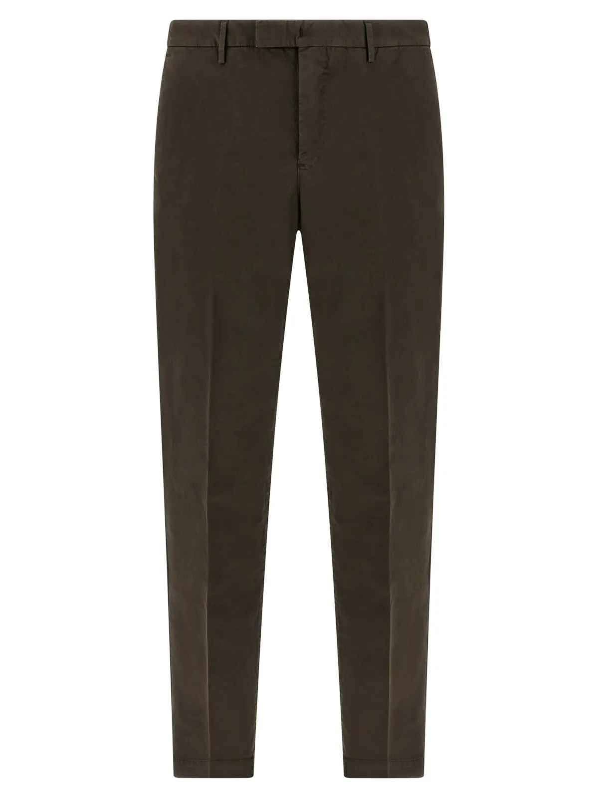 Чоловічі штани коричневого відтінку з колекції Pt Torino виконані з високоякісного бавовняного матеріалу з еластаном, що забезпечує комфорт і ідеальну посадку. Строгий прямий крій, елегантна стрілка та продумані деталі поєднують стиль і функціональність, підкреслюючи статус і вишуканий смак власника.