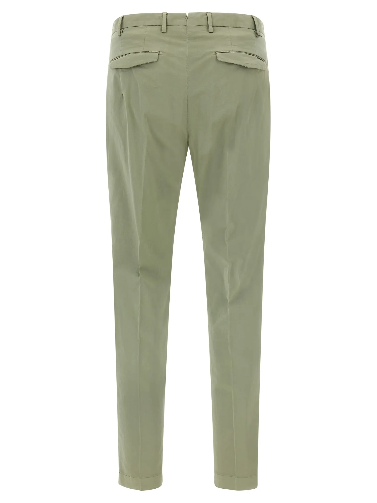 Пружна фактура бавовняного габардину м’яко підлаштовується під кожен крок, зберігаючи чітку форму завдяки складному поперечному крою. Виразне ребро запрасованої стрілки додає образу графічності, а прихована система застібок із металевим гачком створює делікатну фіксацію. Кожна лінія формує витончену геометрію поза межами тимчасових трендів.