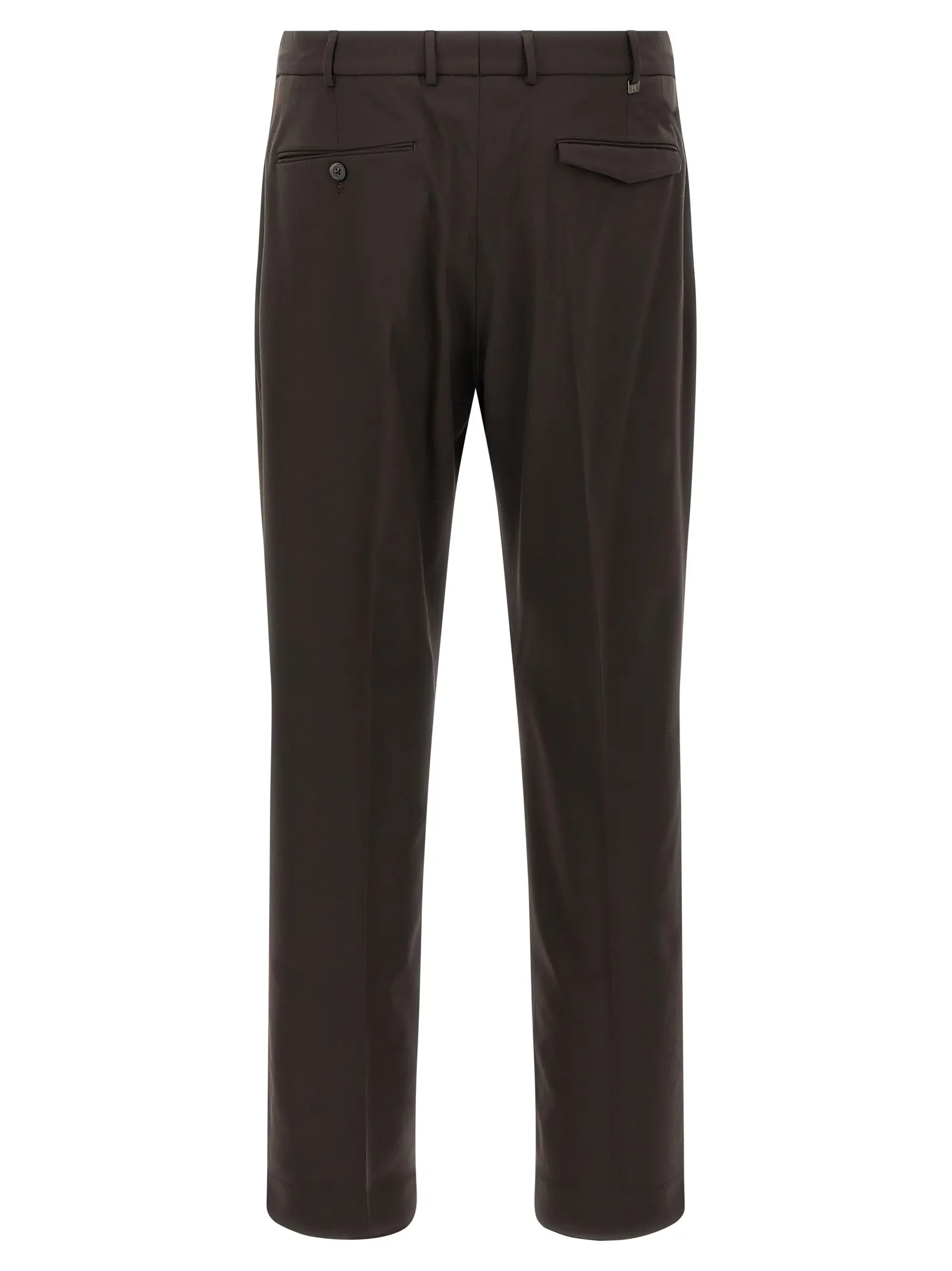 Чоловічі штани Pt Torino Michael виконані з вишуканої суміші 95% нової вовни та 5% еластану, що забезпечує комфортну посадку та легку еластичність. Елегантний коричневий відтінок, класичний прямий крій із стрілками та практичні кишені підкреслюють статусний стиль і універсальність для будь-яких важливих подій.
