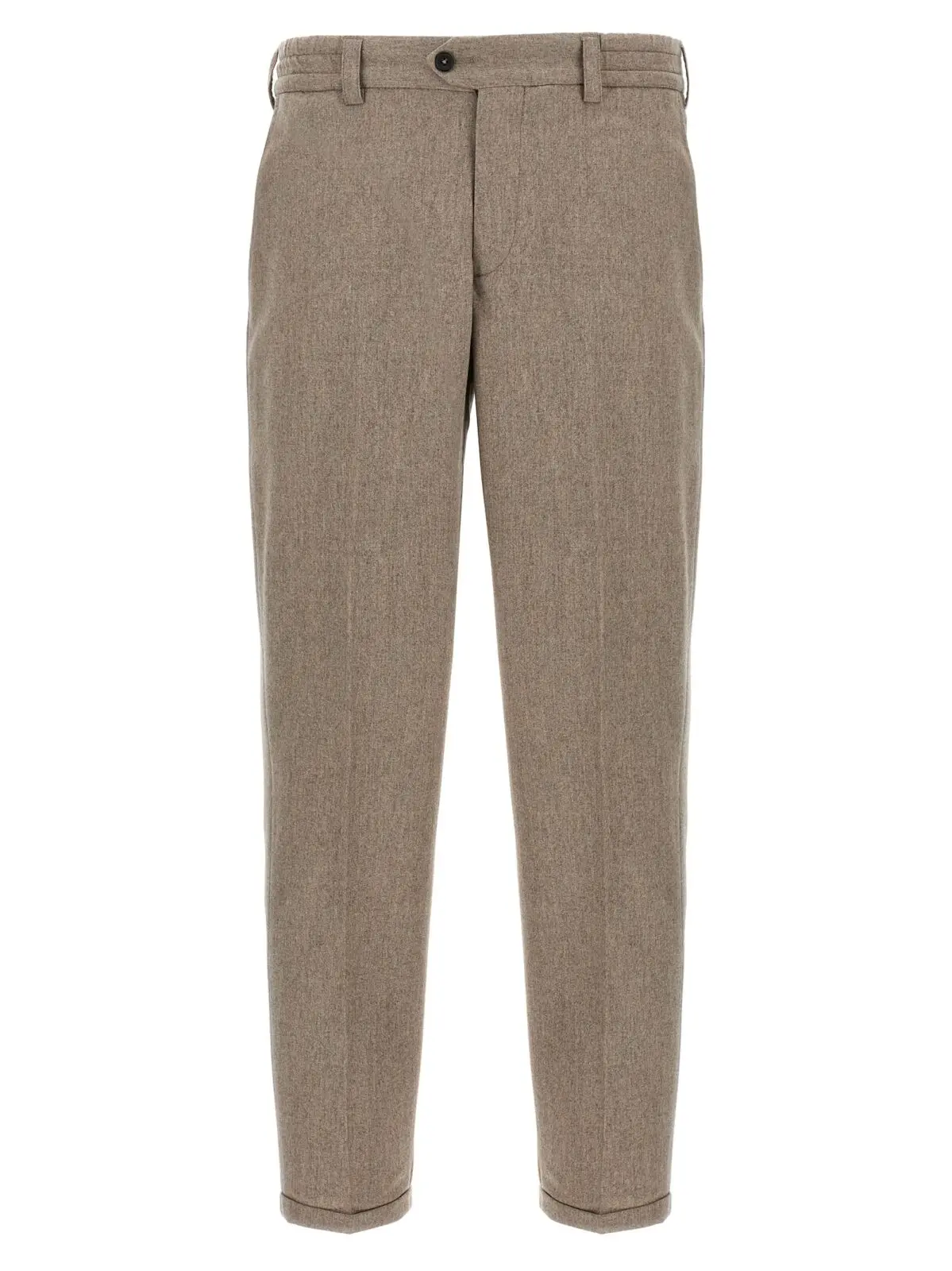 Чоловічі штани бежевого кольору з колекції The Rebel виготовлені з інноваційної суміші вовни преміумякості, що забезпечує комфорт і довговічність. Еластичний пояс, класична застібка на ґудзики, практичні кишені та елегантний прямий крій із розтягнутою складкою створюють ідеальний баланс стилю та функціональності, підкреслюючи статус і вишуканість власника.