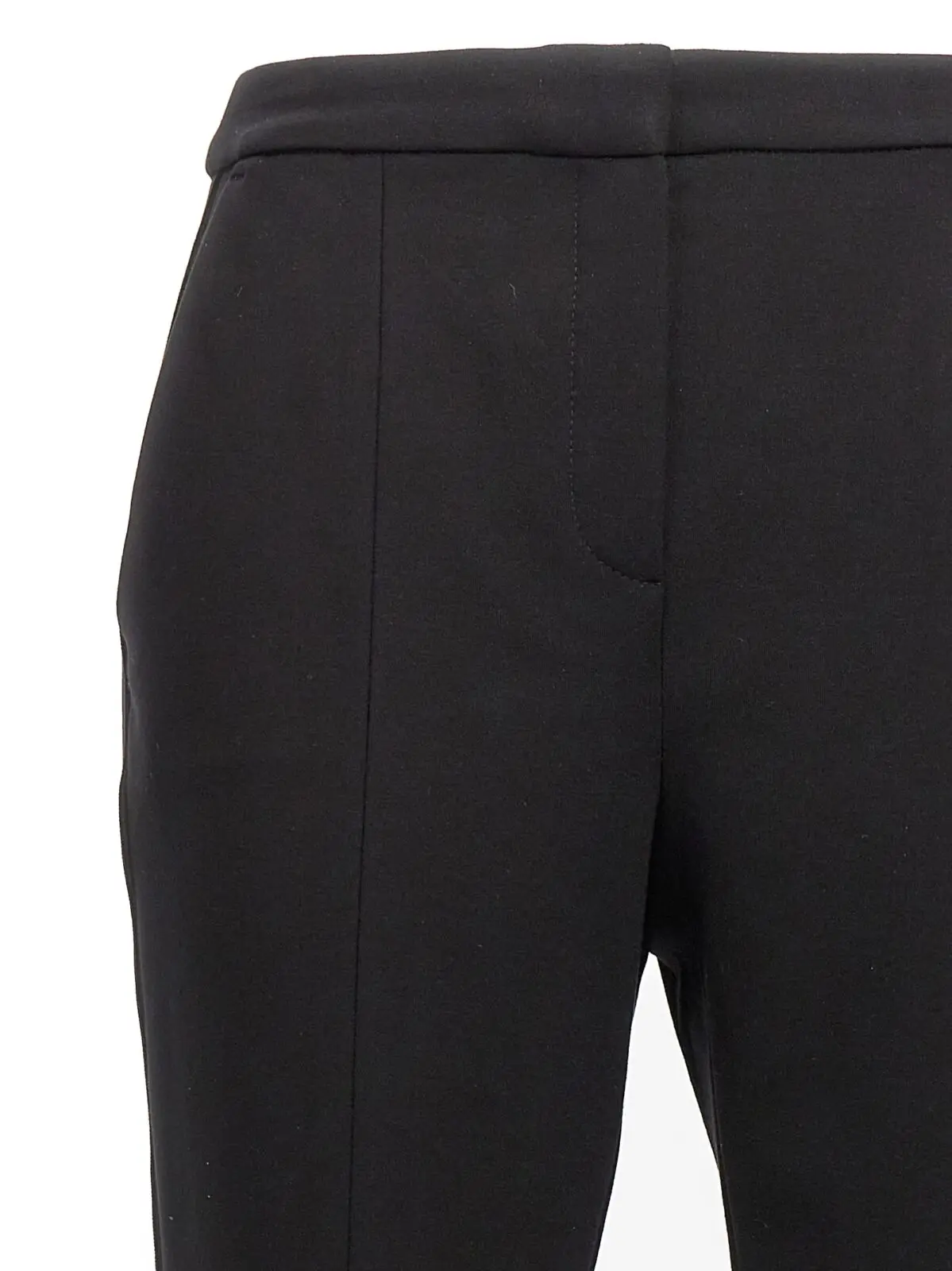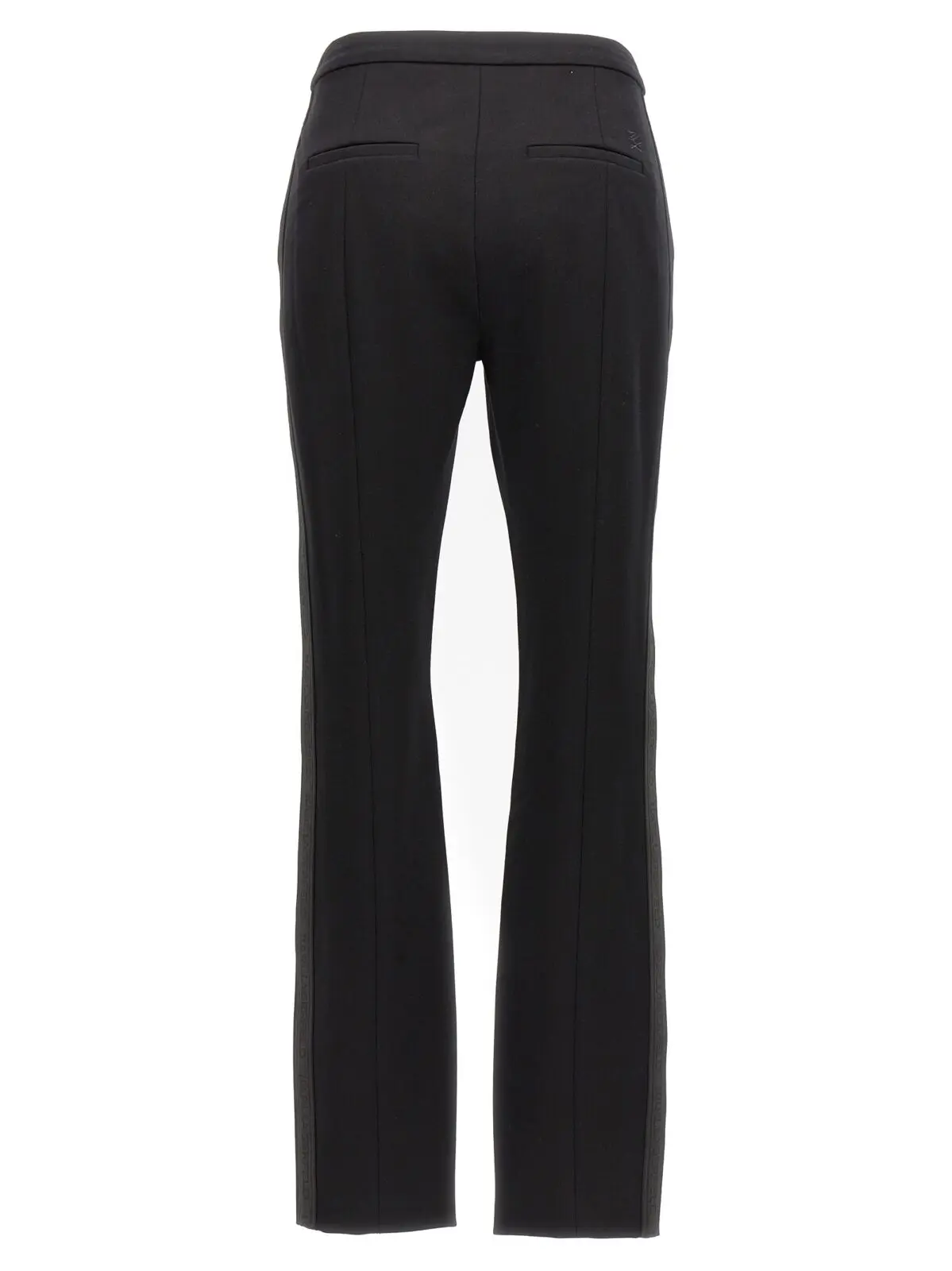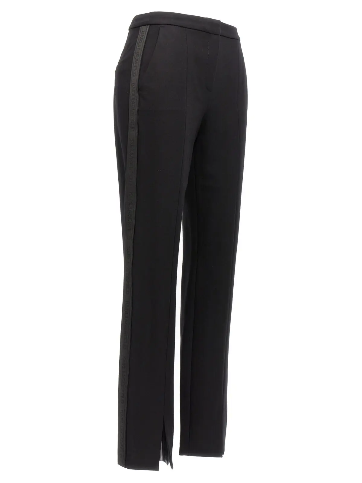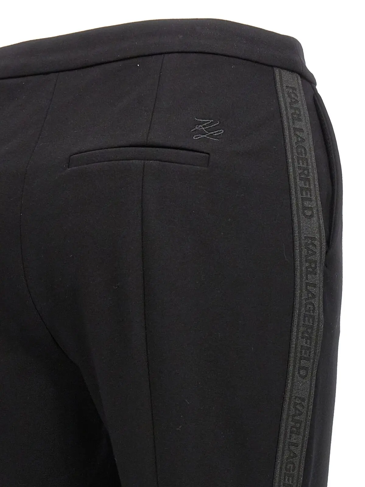 Жіночі штани Punto Karl Lagerfeld в чорному кольорі зроблені з еластичної тканини з застібкою на блискавку та гачок-петлю, кишенями і боковими смужками з логотипом. Вони виготовлені з 60% віскози, 35% поліаміду і 5% еластану.