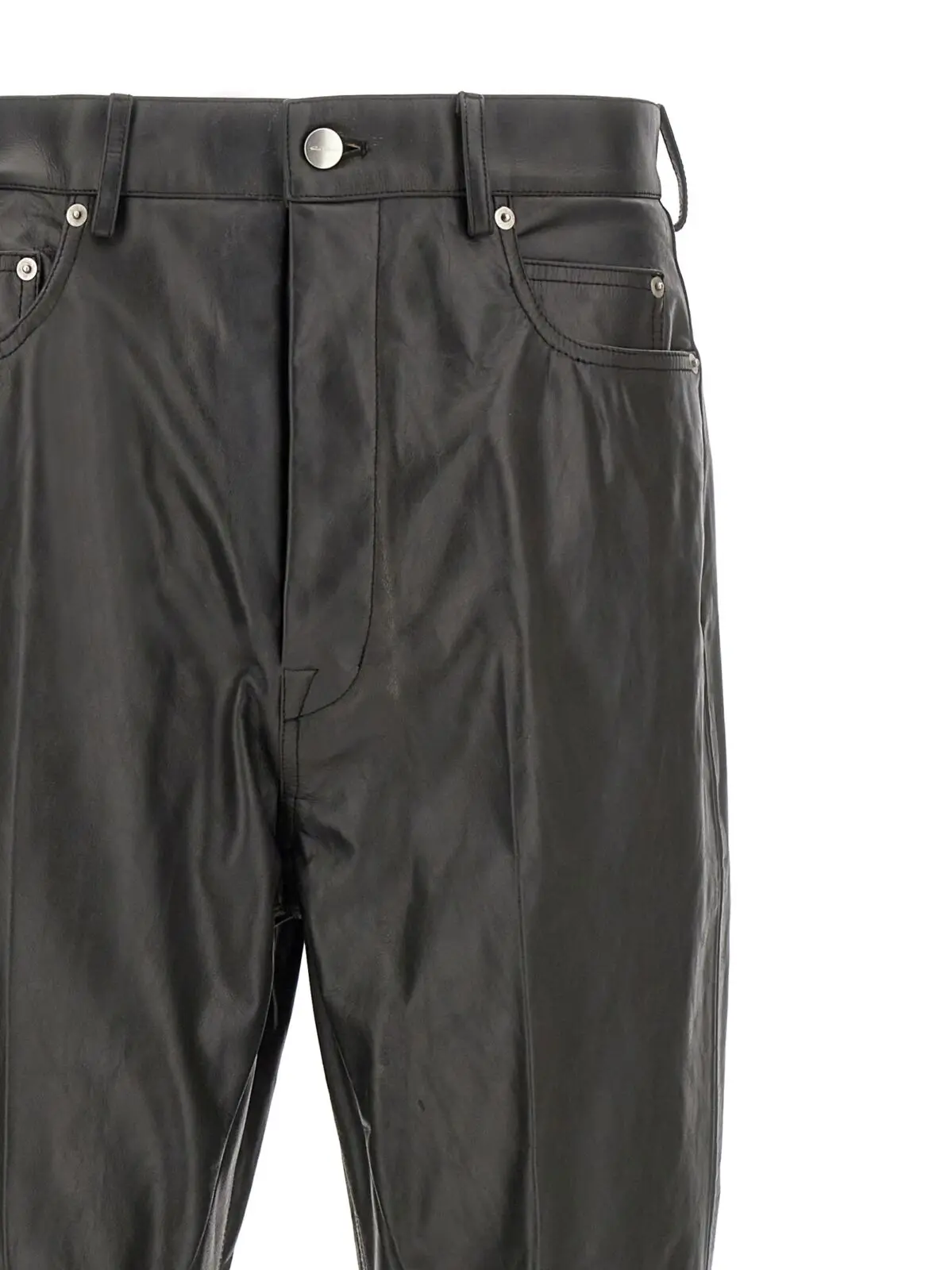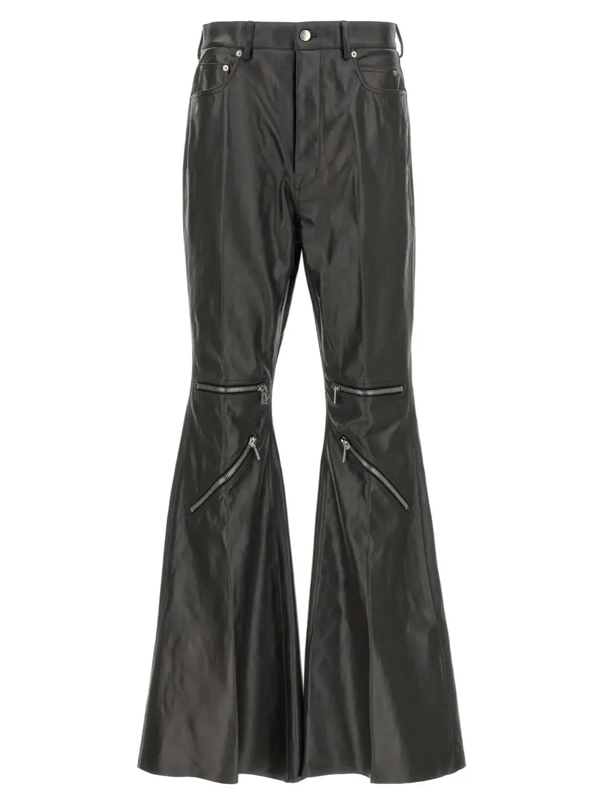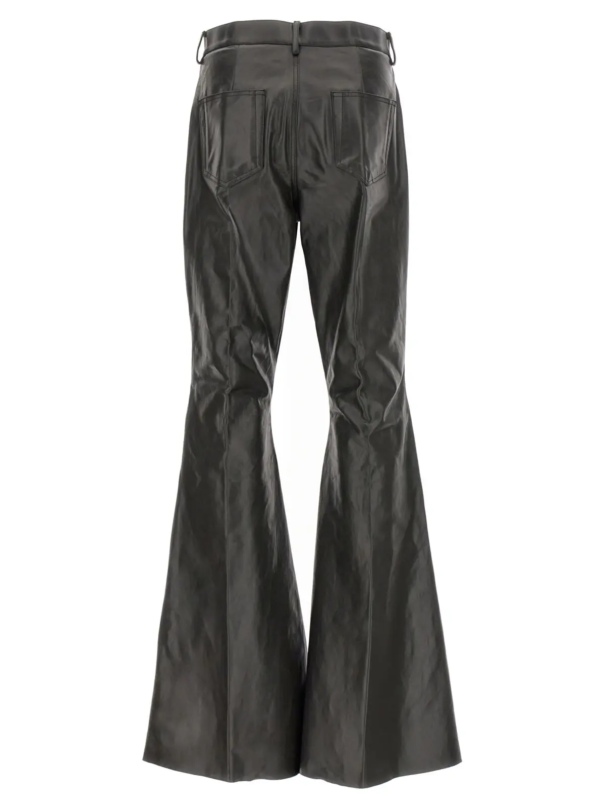 Чорні чоловічі штани Bolan Cargo від Rick Owens виготовлені з високоякісної шкіри теляти, поєднують інноваційний дизайн із класичною елегантністю. Висока посадка, розкльошені довгі штани з необробленим низом та функціональні п’ять кишень створюють неповторний стиль і статус, підкреслюючи вишуканість і універсальність образу.