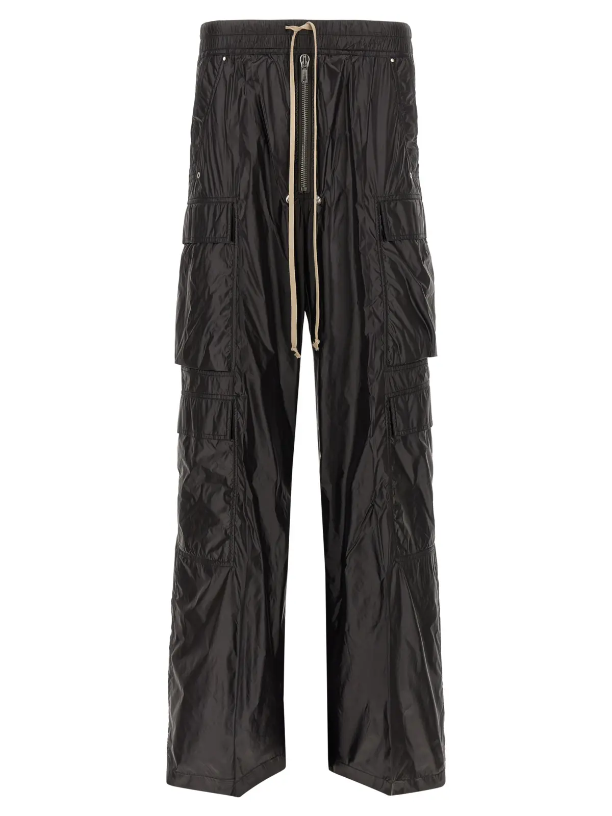 Гладкий нейлон із виразним блиском створює динамічний образ, де об’ємні накладні кишені гармонійно доповнюють вільний крій широких штанин. Низька лінія кроку додає розслабленості кожній вашій події, а еластичний пояс зі шнурком гарантує індивідуальну зручність. Видима блискавка спереду завершує цей сміливий дизайн, перетворюючи практичну річ на центр уваги у вашому гардеробі.