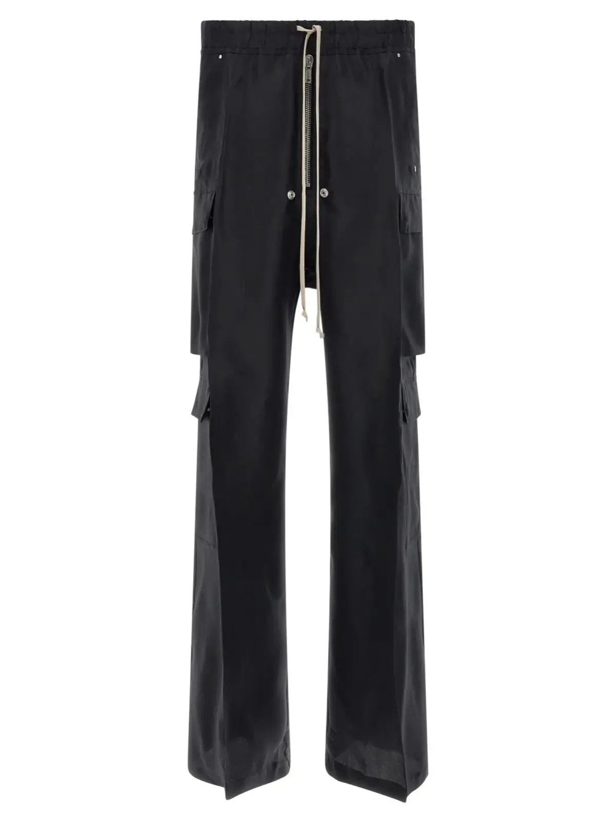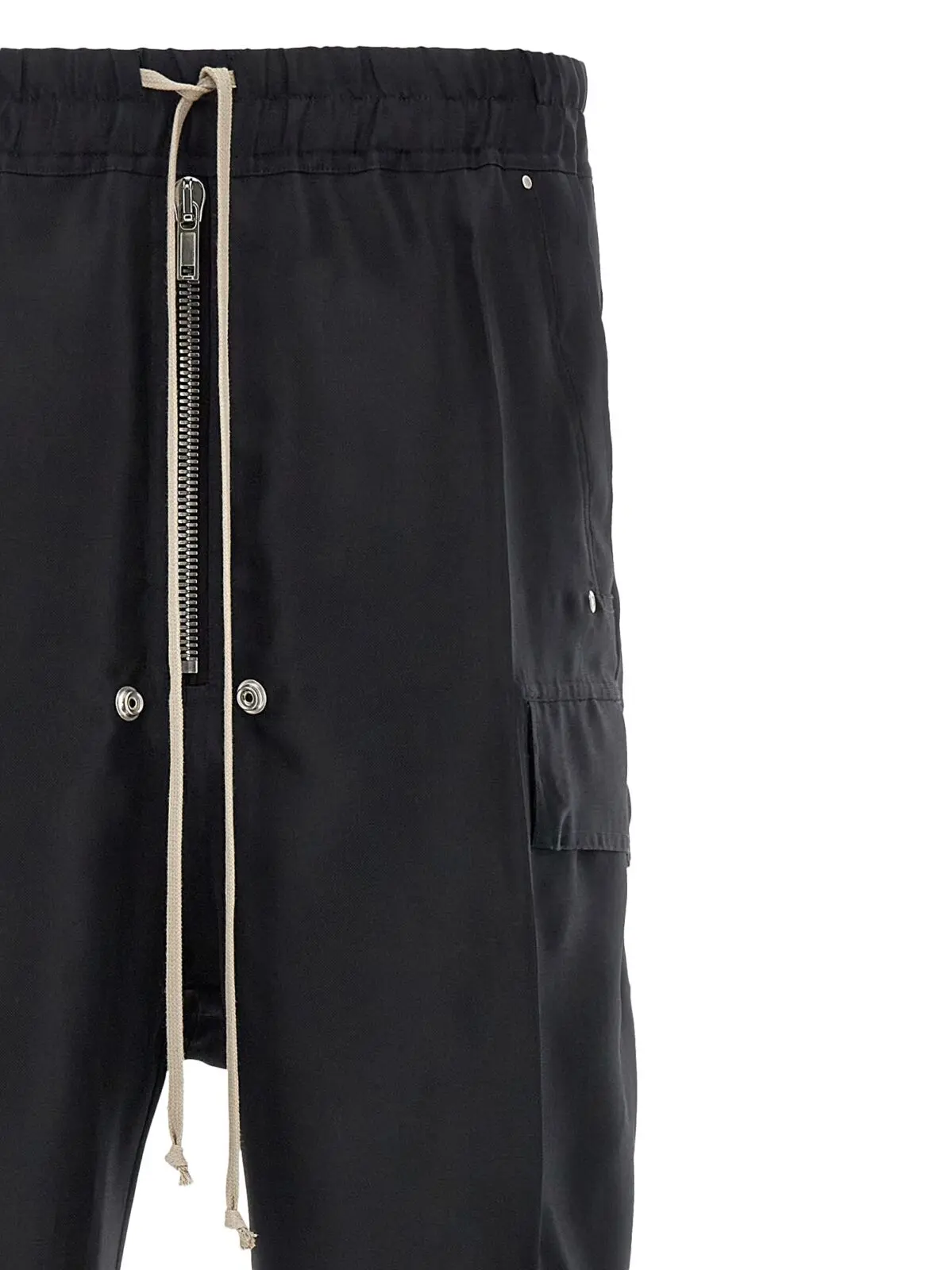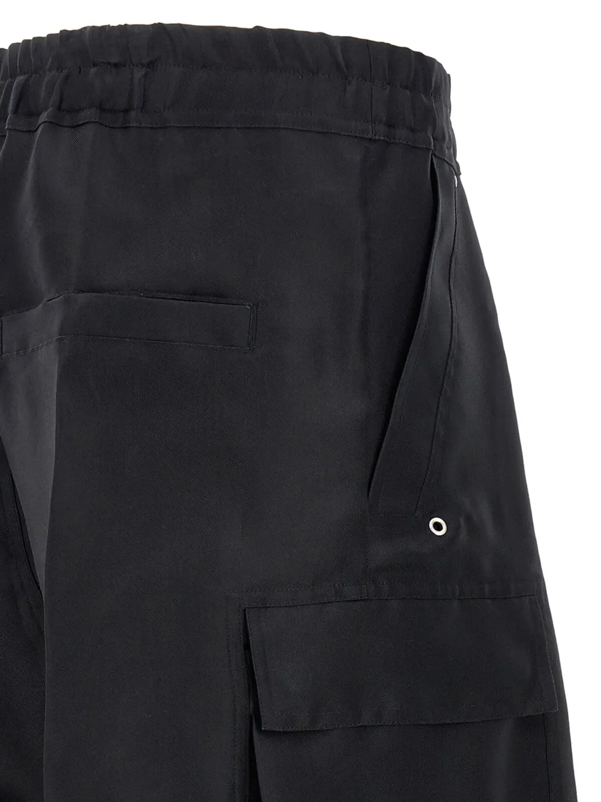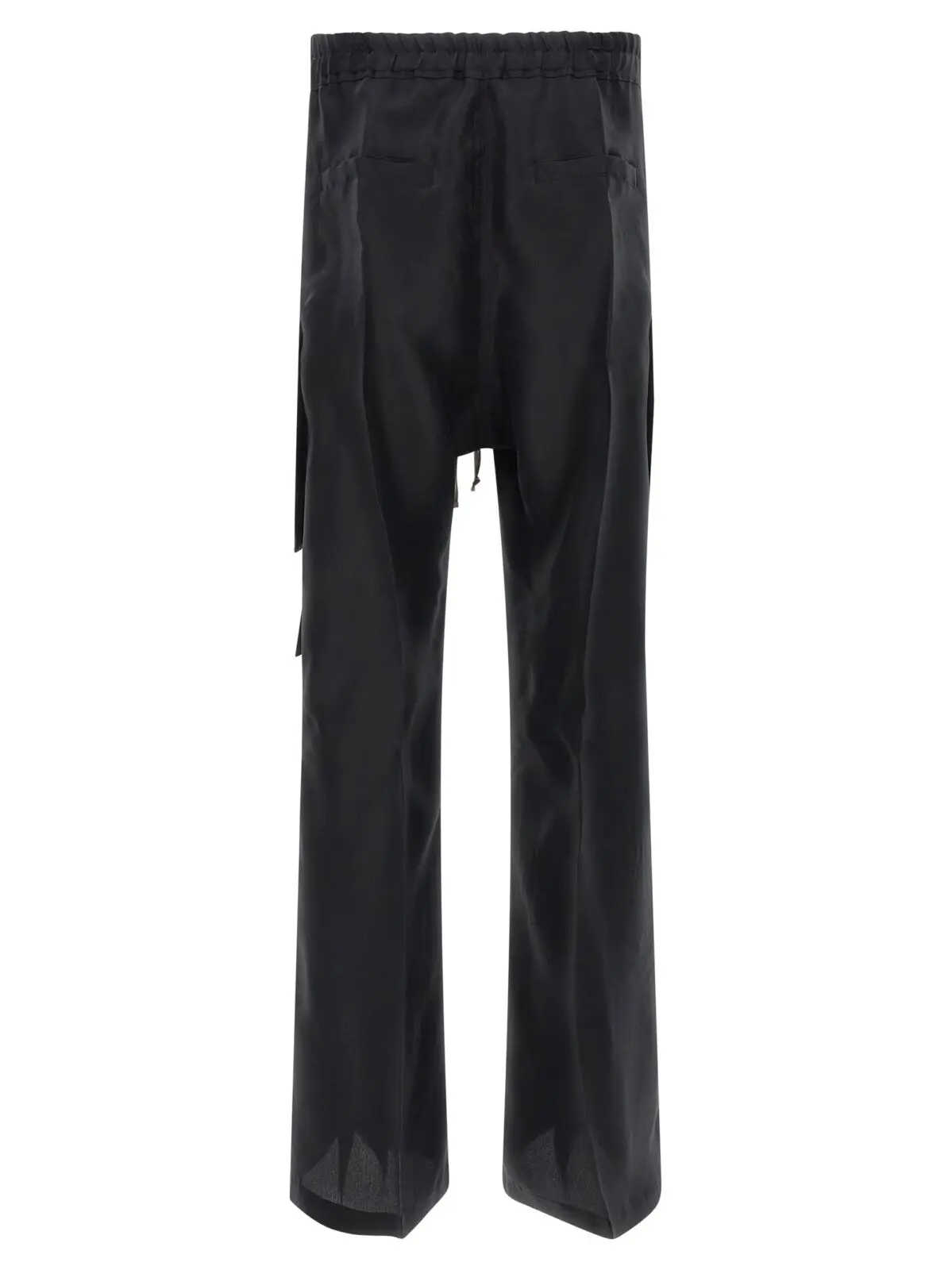 Чорні чоловічі штани з шовку від Rick Owens поєднують інноваційний дизайн з низькою посадкою та широкими штанинами, забезпечуючи неперевершений комфорт завдяки еластичному поясу з регульованим шнурком. Вишуканість матеріалу та функціональні деталі надають образу статус і стиль преміум-класу.