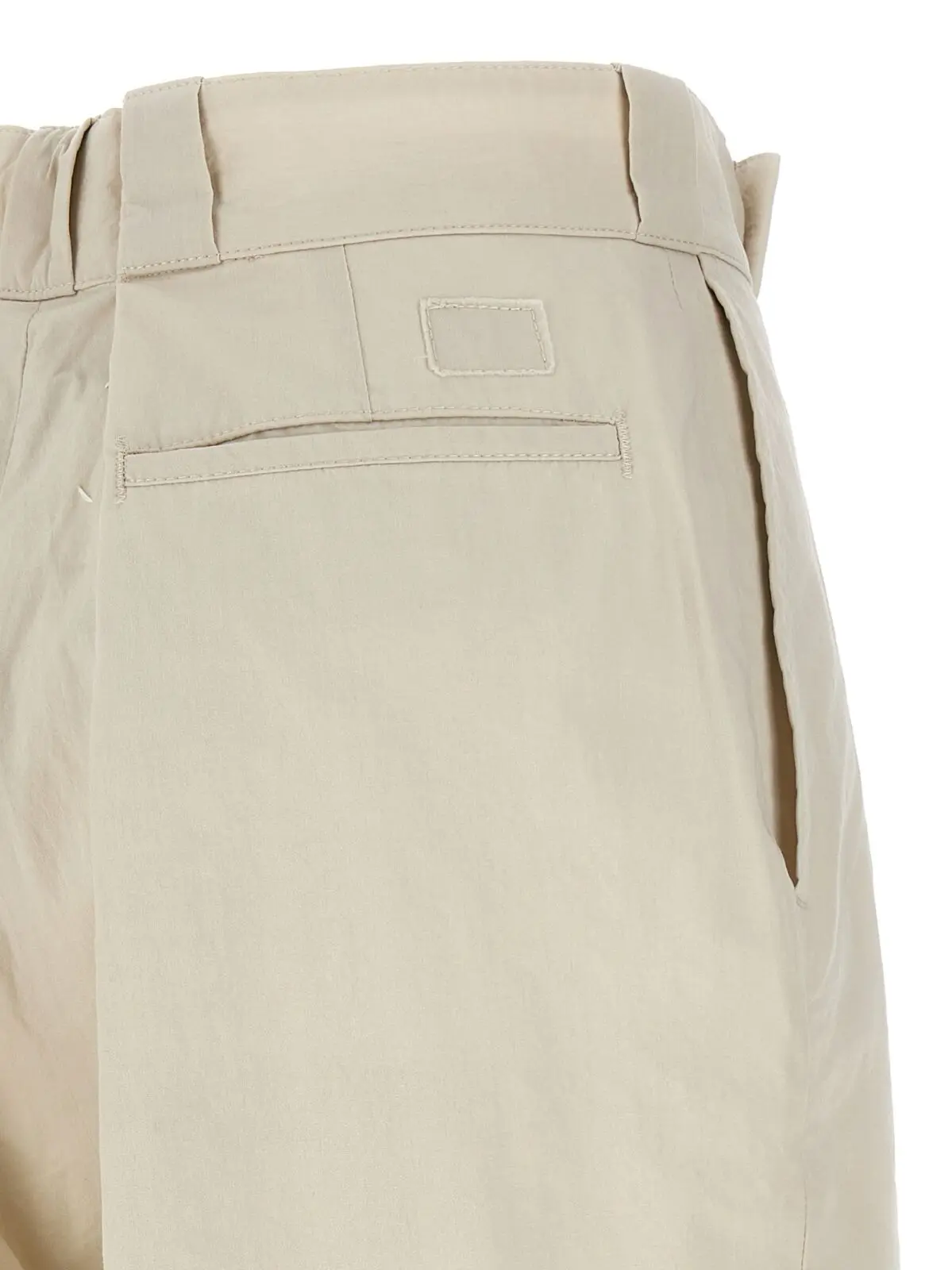 Штани широкого фасону бежевого кольору виготовлені з високоякісної суміші бавовни та поліаміду, що забезпечує комфорт і довговічність. Вишуканий дизайн із застібкою на блискавку, гачок і ґудзик поєднується з практичністю кишень, підкреслюючи стиль і статус сучасної жінки.