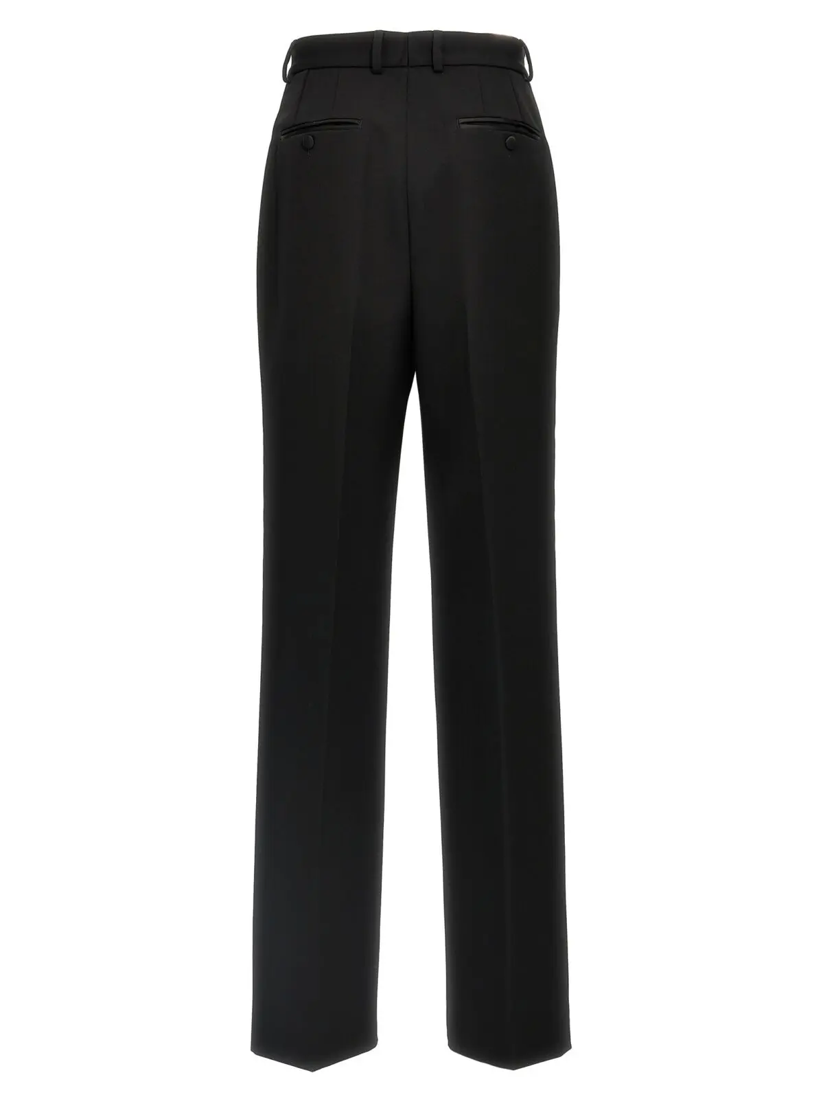 Штани смокінг Dolce Gabbana вражають своєю елегантністю та бездоганним дизайном, що підкреслює жіночність і стиль. Виготовлені з високоякісної вовняної габардини, що містить 90% вовни, 8% шовку та 2% поліестеру, вони забезпечують відчуття розкоші та комфорту. Висока талія додає силуету витонченості, а закриття на блискавці та гудзику створює практичність для щоденного носіння. Стильні кишені не лише виконують функціональну роль, а й підкреслюють сучасний вигляд виробу. Ці штани стають ідеальним вибором для будь-якої урочистої події, надаючи своїй власниці статусу та впевненості. Інноваційний підхід до дизайну, з акцентом на екологічність та якість, робить цей виріб універсальним доповненням до гардеробу, що легко поєднується з різними елементами стилю.