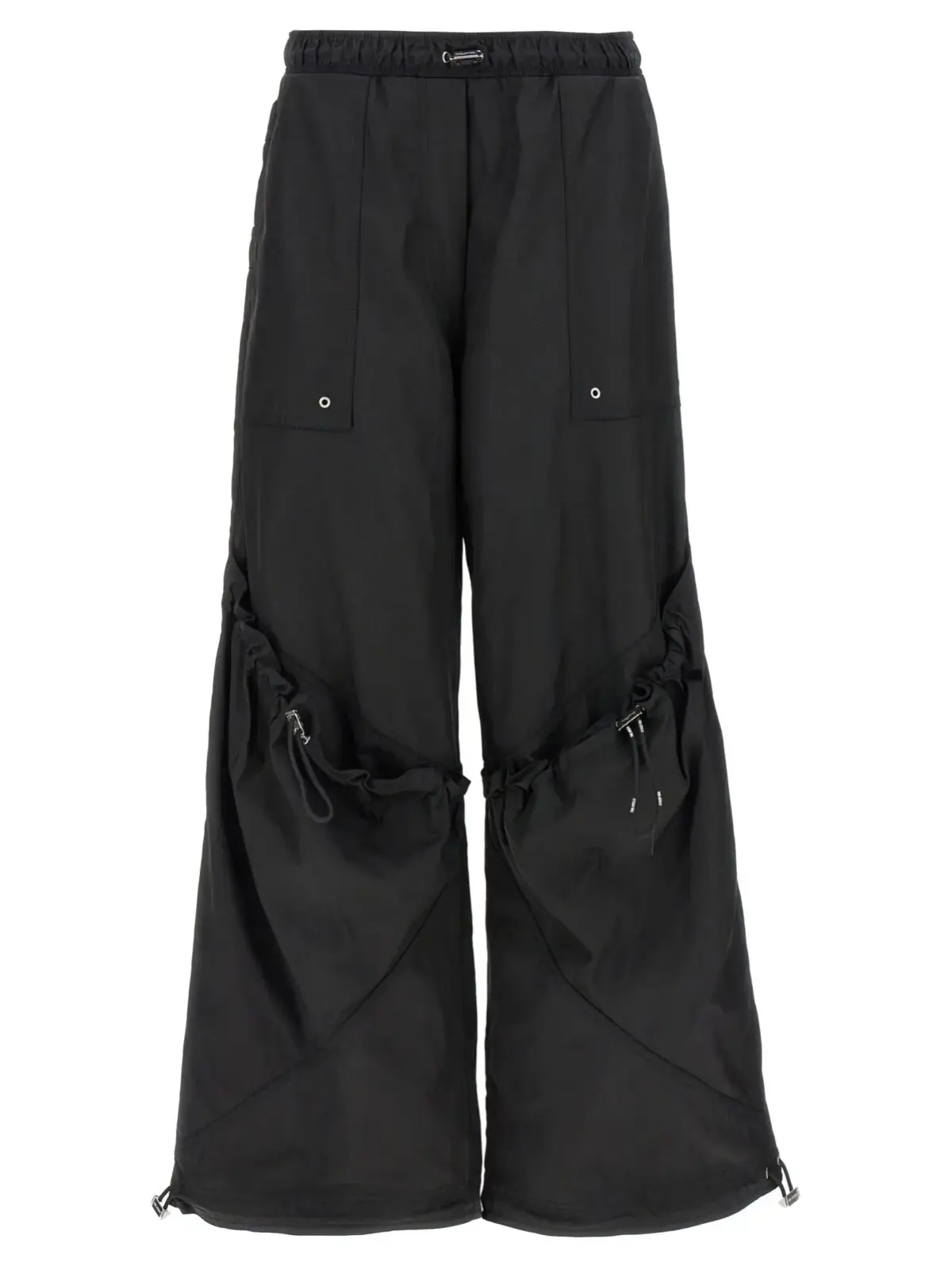 Ці штани від The Attico, виготовлені з високоякісного нейлону, вражають своїм оверсайз кроєм та елегантним дизайном. Регульований еластичний пояс забезпечує максимальний комфорт, а практичні кишені з шнурком додають функціональності. Додаткові шнурки на низу штанів дозволяють створити індивідуальний стиль. Цей універсальний елемент гардеробу підкреслить вашу статусність і сучасний смак, ставши ідеальним доповненням до будь-якого образу.