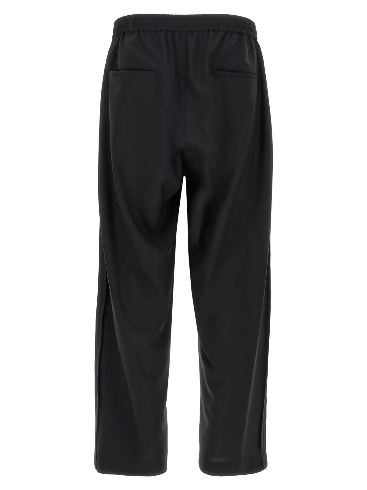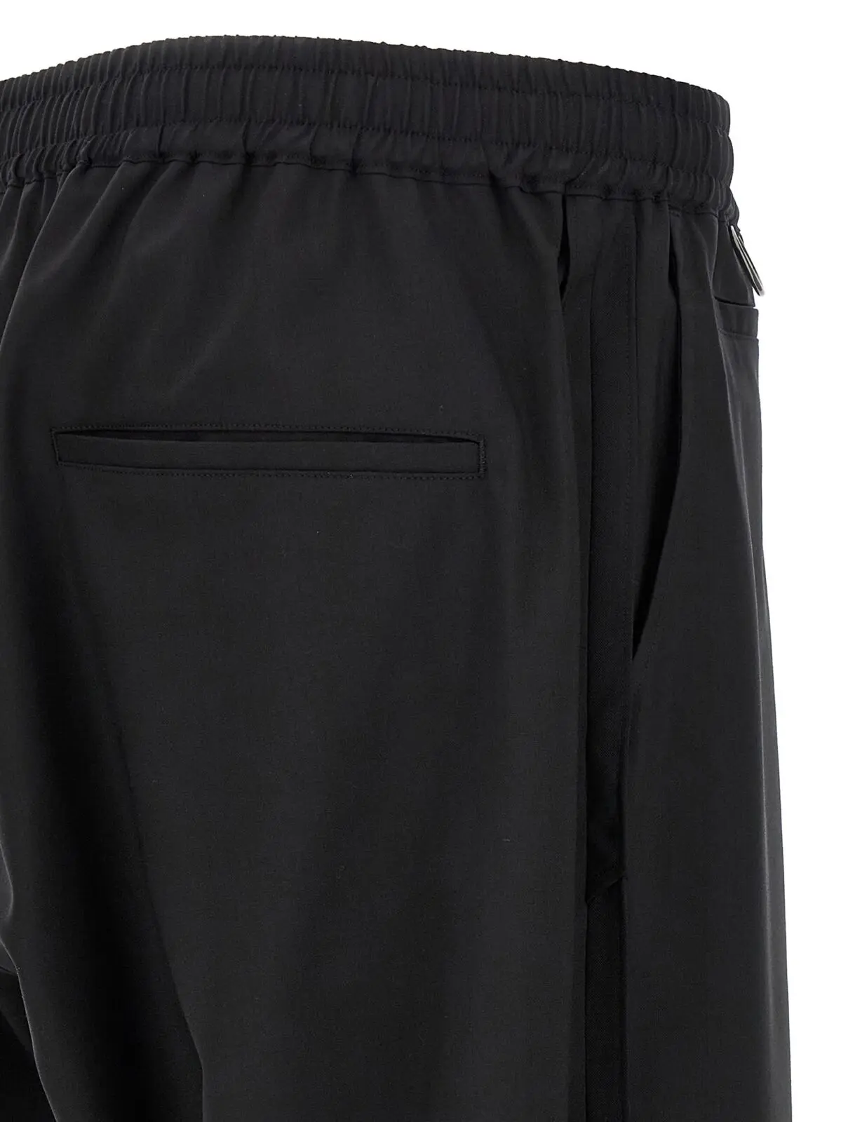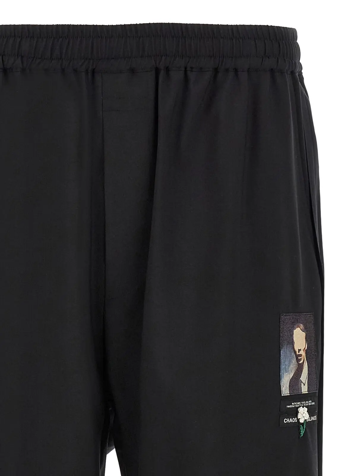 Чорні чоловічі штани з преміальної суміші вовни, поліестеру та нейлону поєднують інноваційний дизайн із вишуканою вишивкою та жакардовою аплікацією спереду. Регульований еластичний пояс із застібкою на блискавку забезпечує ідеальну посадку, а широкий крій додає стильну універсальність і статусний вигляд.