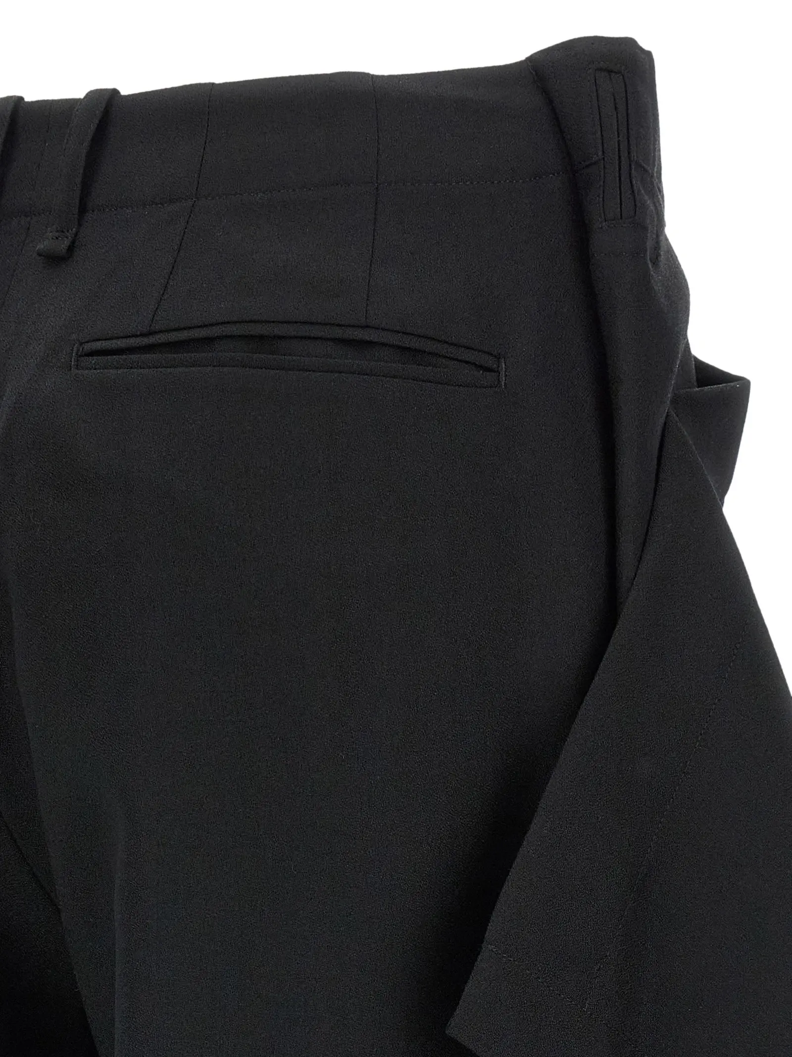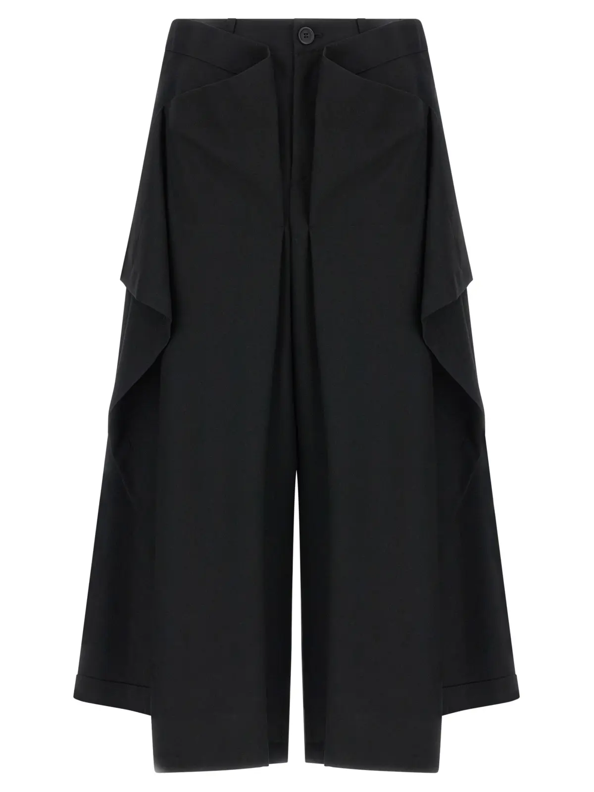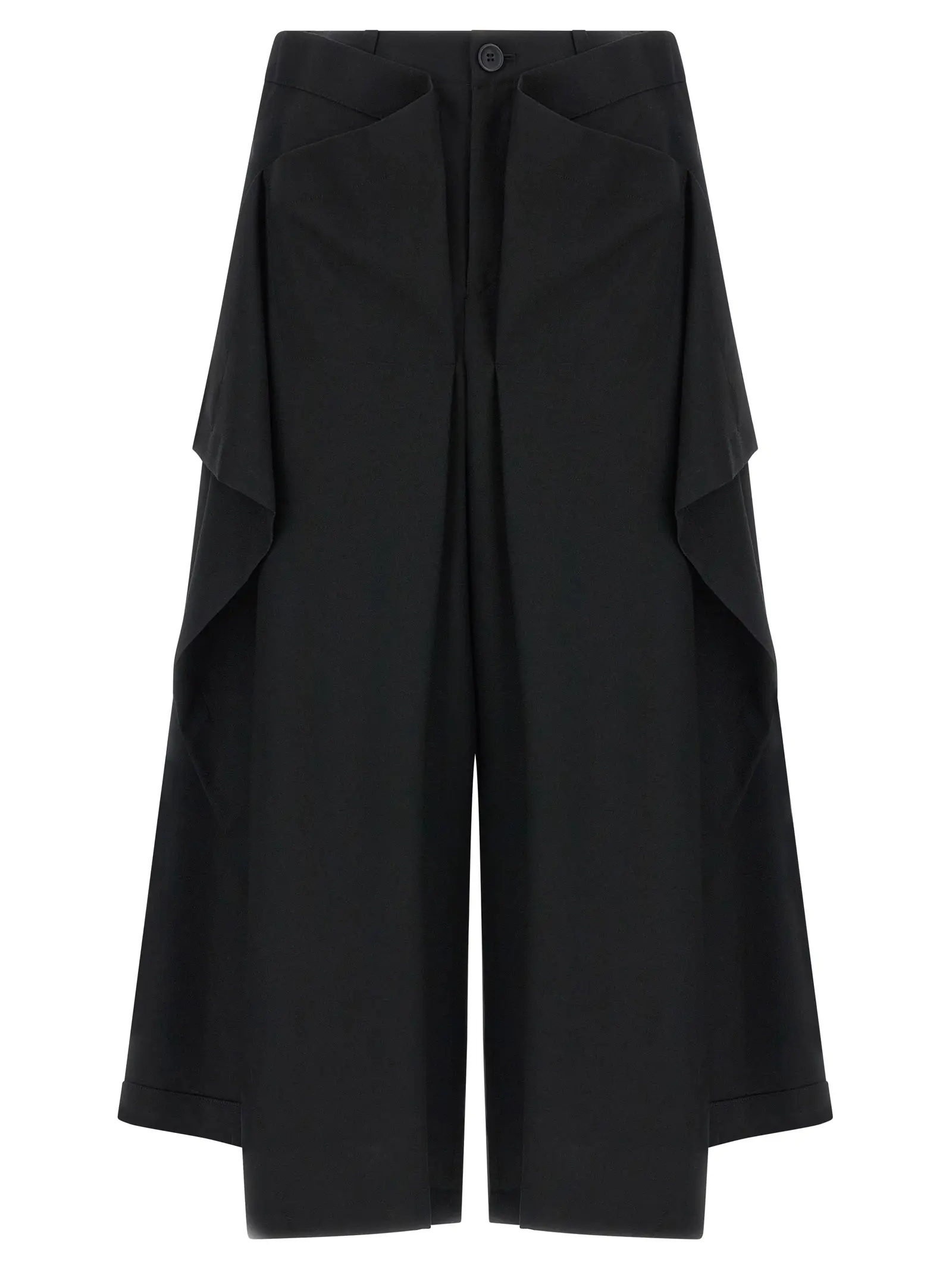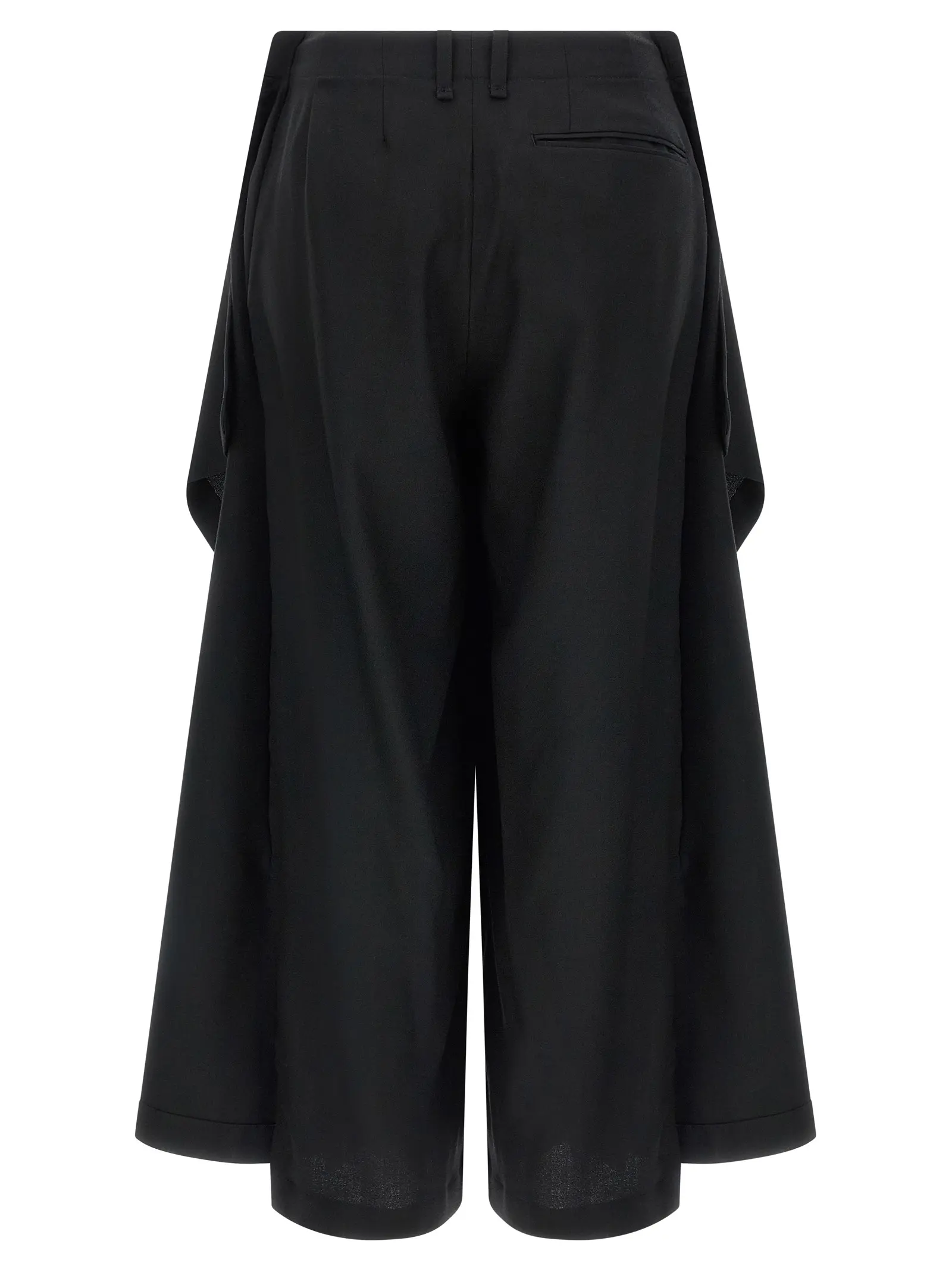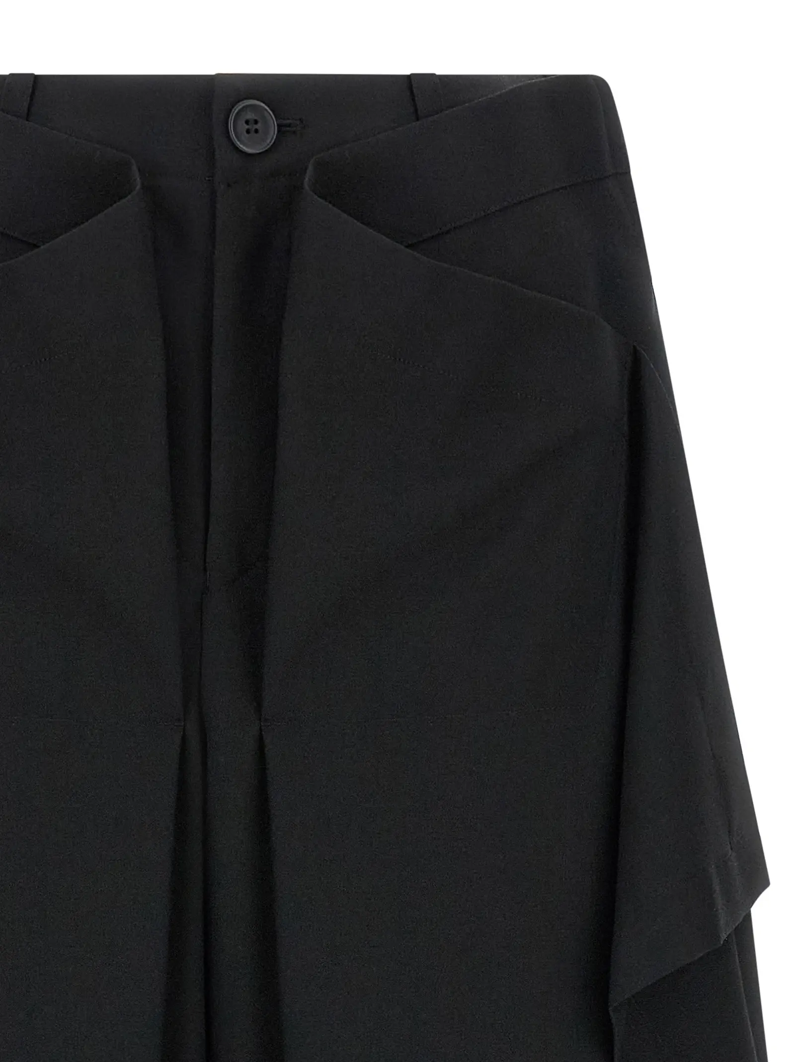 Чорні жіночі штани з колекції Issey Miyake виготовлені з 100% тонкої вовни за інноваційною технікою Nashiji, що надає виробу унікальну текстуру та вишуканість. Драпірований силует і широкі штани з характерними боковими панелями підкреслюють елегантність і сучасний стиль, а функціональні кишені, застібка на блискавку з передньою кнопкою та розрізи внизу забезпечують комфорт і універсальність для впевненого образу високого статусу.
