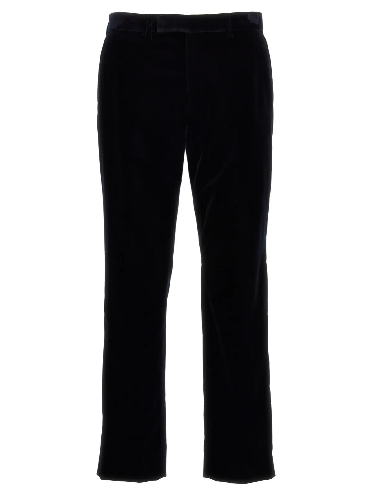 Чоловічі штани Velvet Gucci в синьому кольорі з високоякісного бавовни (98%) та еластану (2%). Мають замок, гачок та ґудзик для застібки, а також кишені для зручності.