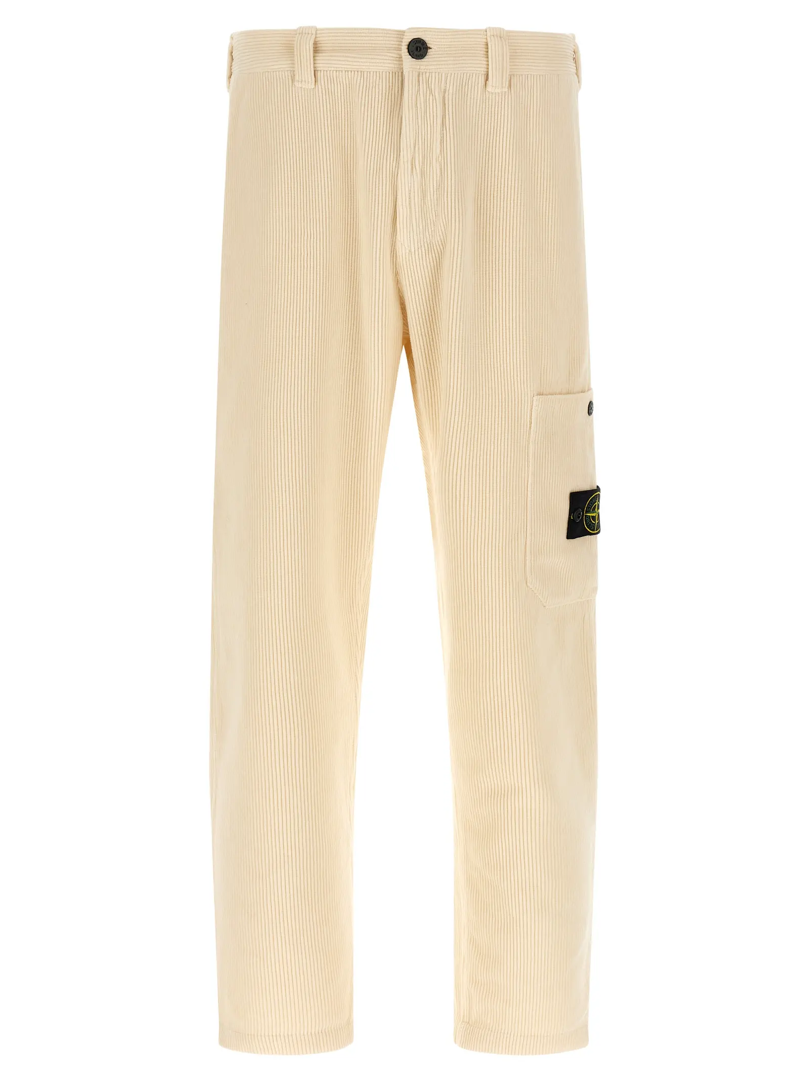 Вишукані чоловічі штани в стилі карго з органічної бавовни, виконані з високоякісного вельвету бежевого відтінку, вирізняються прямим кроєм і функціональністю завдяки просторим кишеням та фірмовій застібці на блискавку і ґудзик. Цей екологічно чистий виріб поєднує інноваційність, комфорт і статусний стиль, підкреслюючи вашу неповторність і витонченість у будь-якій ситуації.