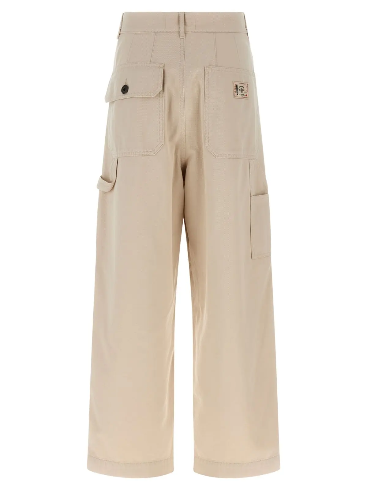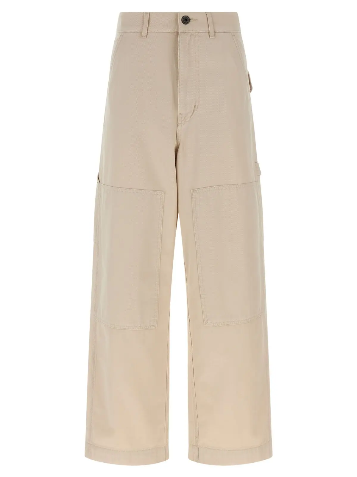 Бежеві штани Weekend Max Mara Caronte виготовлені з високоякісної бавовни, поєднуючи міцність робочого стилю з вишуканим дизайном. Широкий крій, функціональні деталі та вишукані вставки на колінах підкреслюють інноваційність і універсальність, створюючи образ елегантності та статусу.