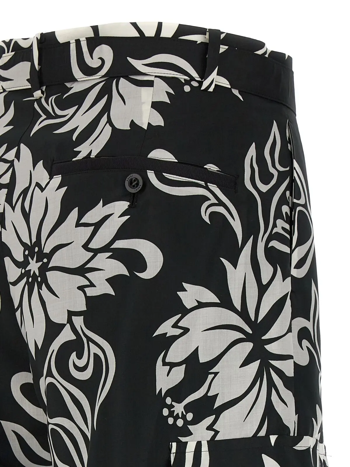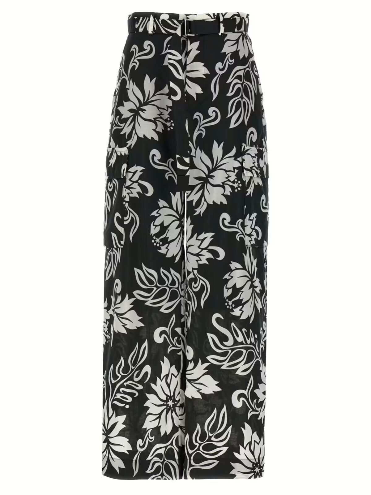 Жіночі карго-штани з бавовни Sacai з бічними кишенями, квітковим принтом по всій поверхні та знімним поясом.