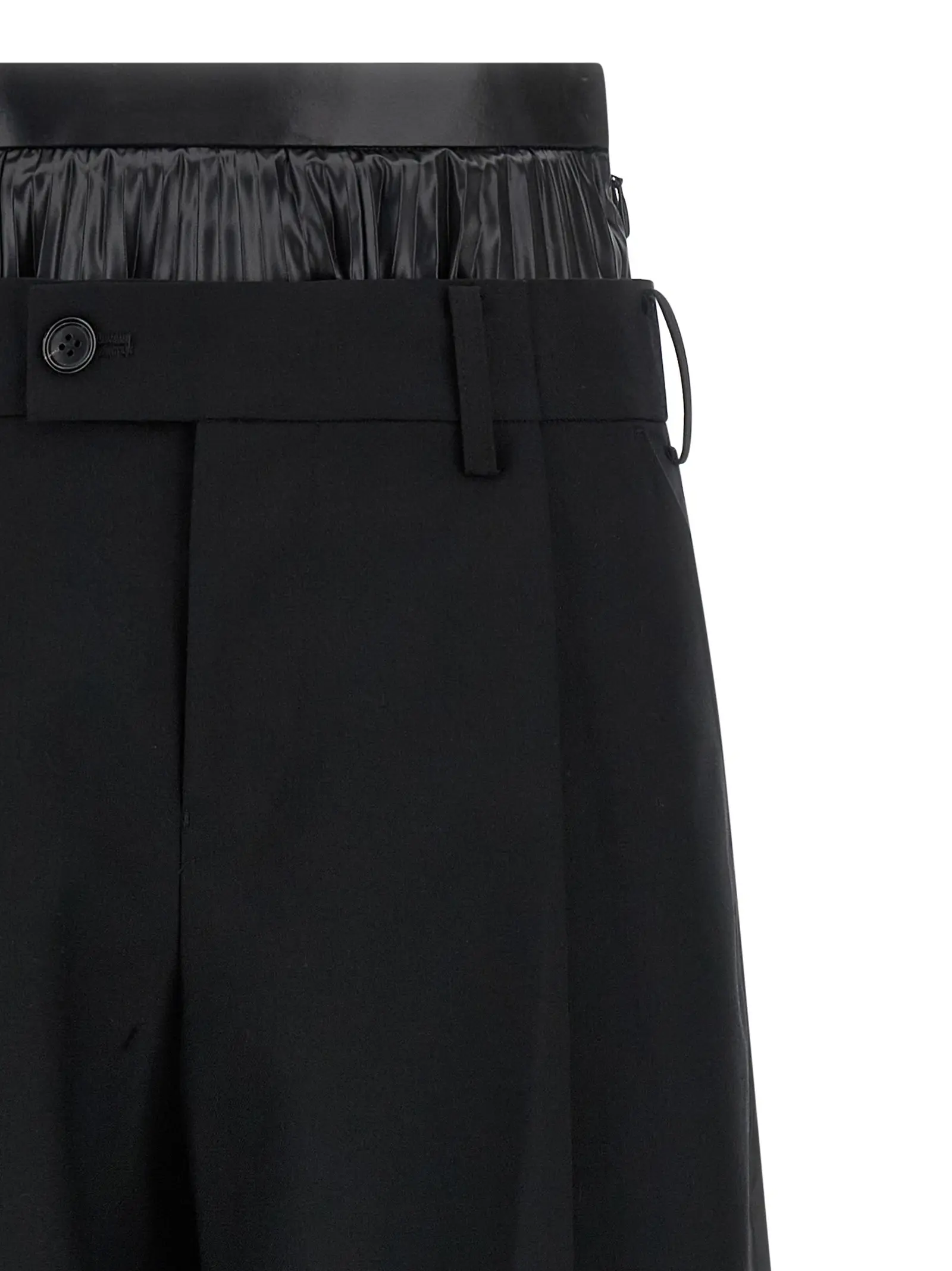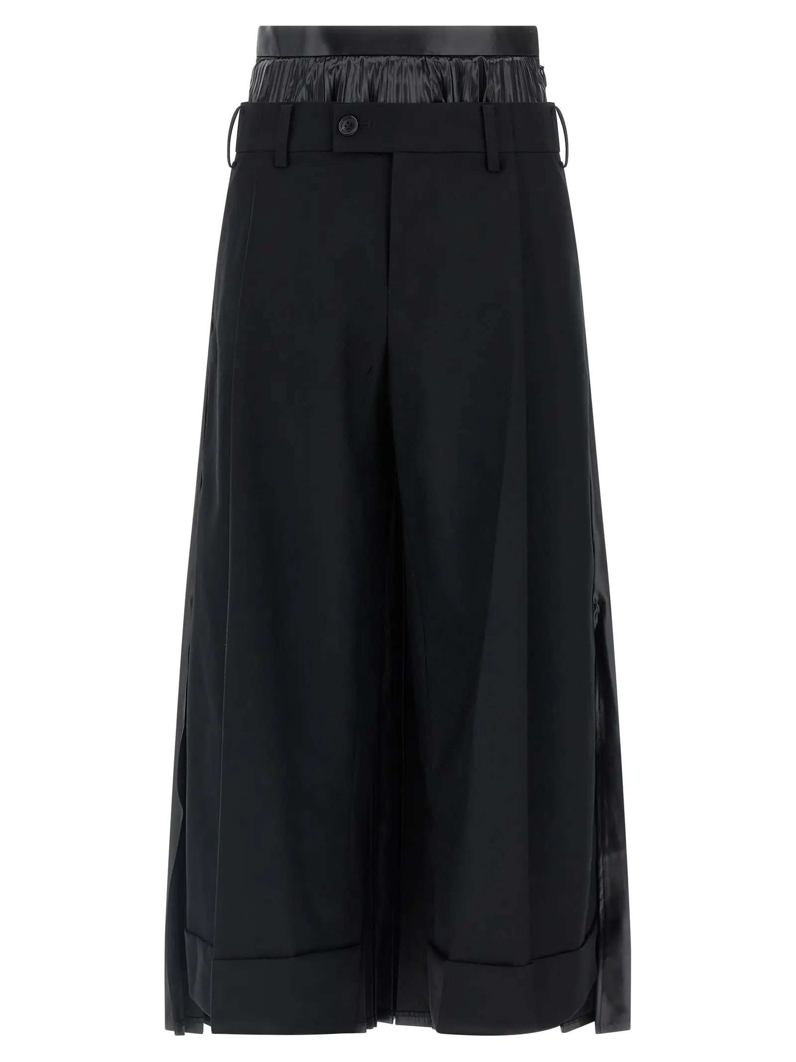 Чорні жіночі штани з подвійним шаром поєднують унікальність вовняної передньої частини та плісированої тканини на спинці, створюючи вишуканий силует із широкими штанинами, боковими розрізами та практичними кишенями. Виготовлені з високоякісної вовни та поліестеру, вони поєднують інноваційний дизайн із комфортом, підкреслюючи статус і неповторний стиль.