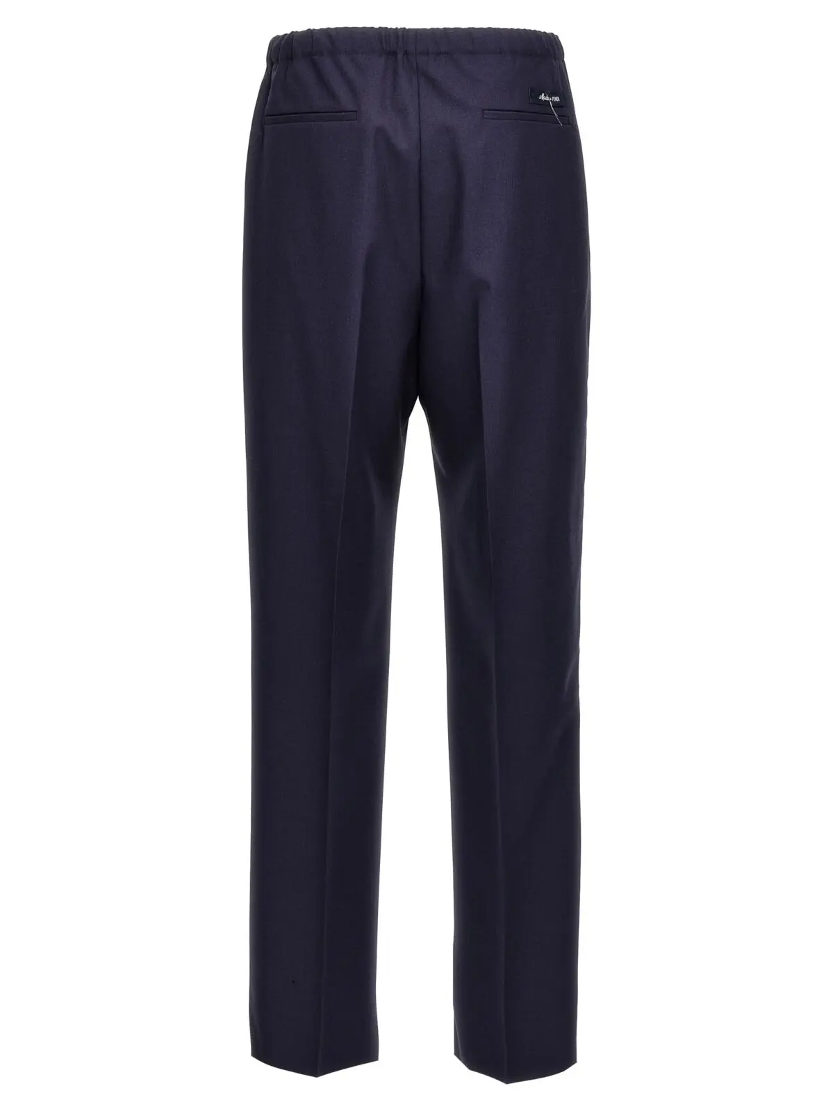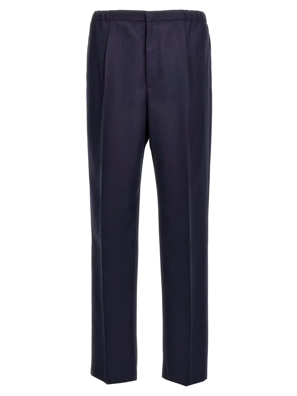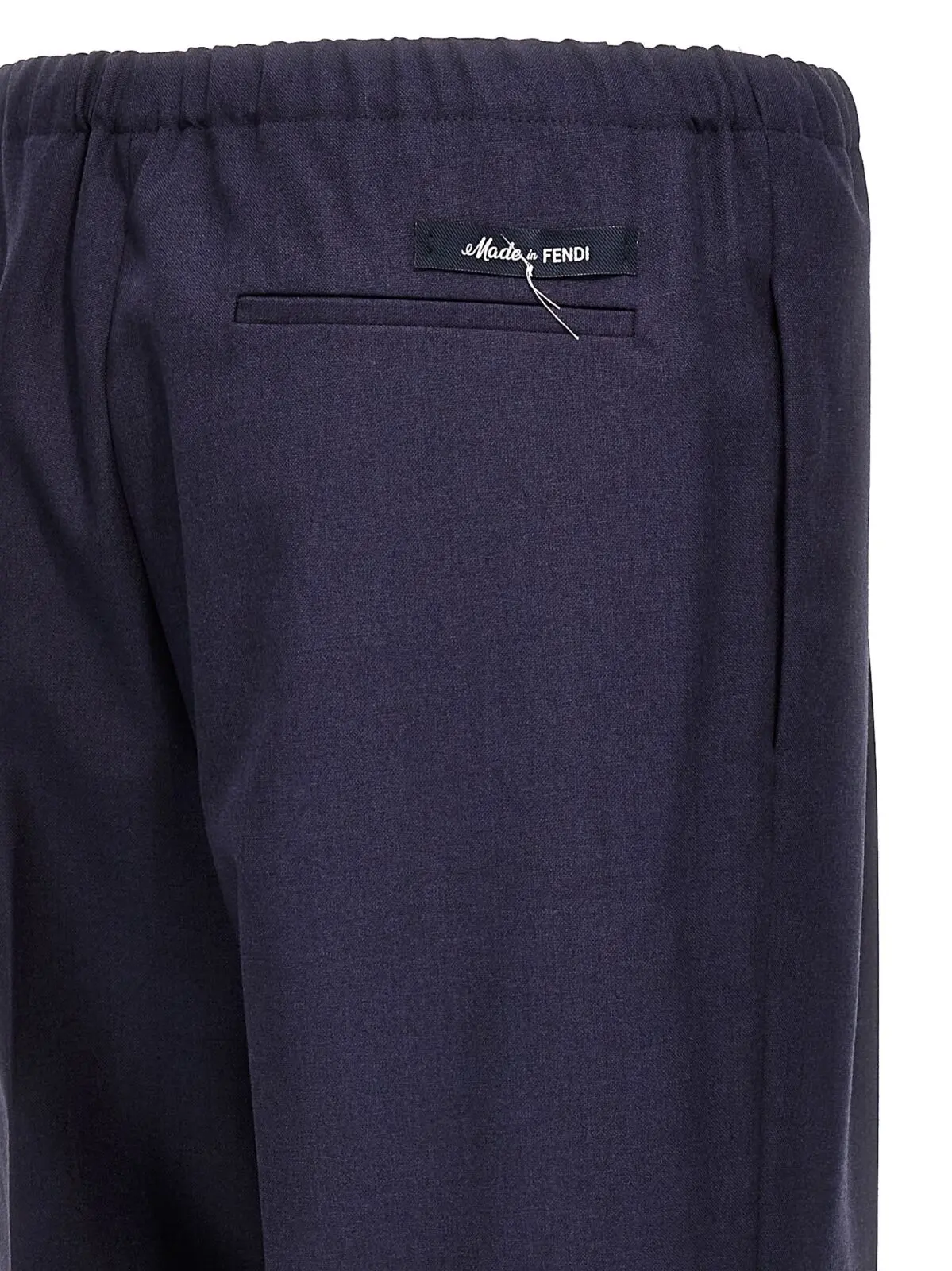 Чоловічі штани з вовни Fendi синього кольору зроблені з 100% натуральної вовни. Комфортний еластичний пояс, акуратні відпрасовані складки та приховані застібки-блискавки створюють стильний і елегантний вигляд. Зручні функціональні кишені додають практичності. Завдяки своєму дизайну та високоякісним матеріалам ці вовняні штани стануть ідеальним вибором для ділового гардеробу.