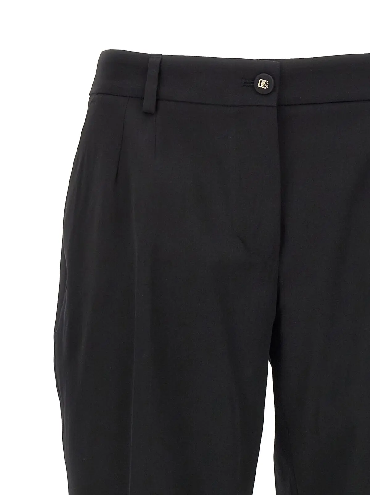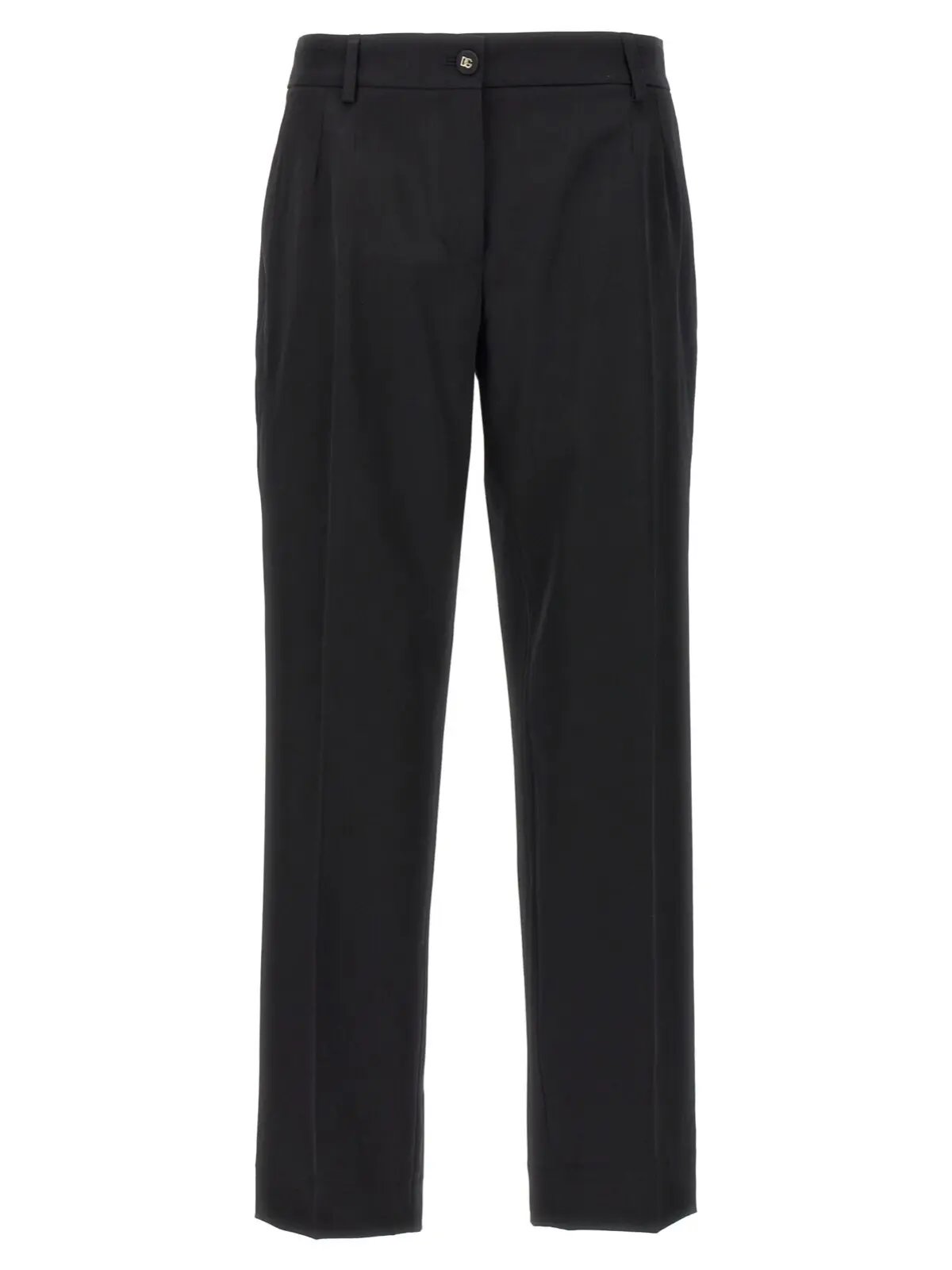 Чорні жіночі штани від Dolce & Gabbana, виготовлені з вовняного полотна Bistretch, якісно поєднують в собі стиль та комфорт. Склад тканини включає 97% чистої вовни та 3% еластану, забезпечуючи ідеальну посадку та еластичність. Штани мають зручну низьку талію, застібаються на блискавку та ґудзик та оснащені кишенями, що додає їм практичності. Ідеальний вибір для створення елегантного образу.
