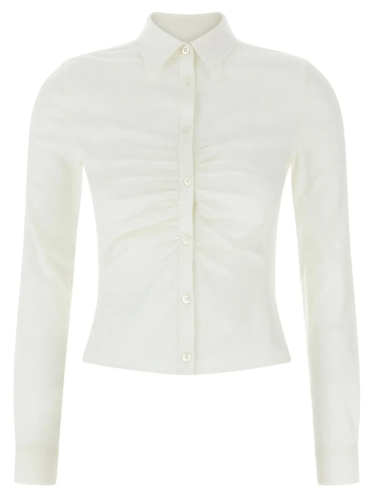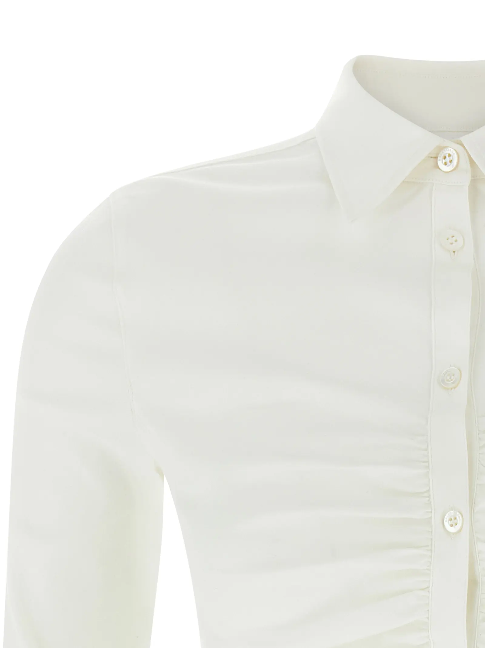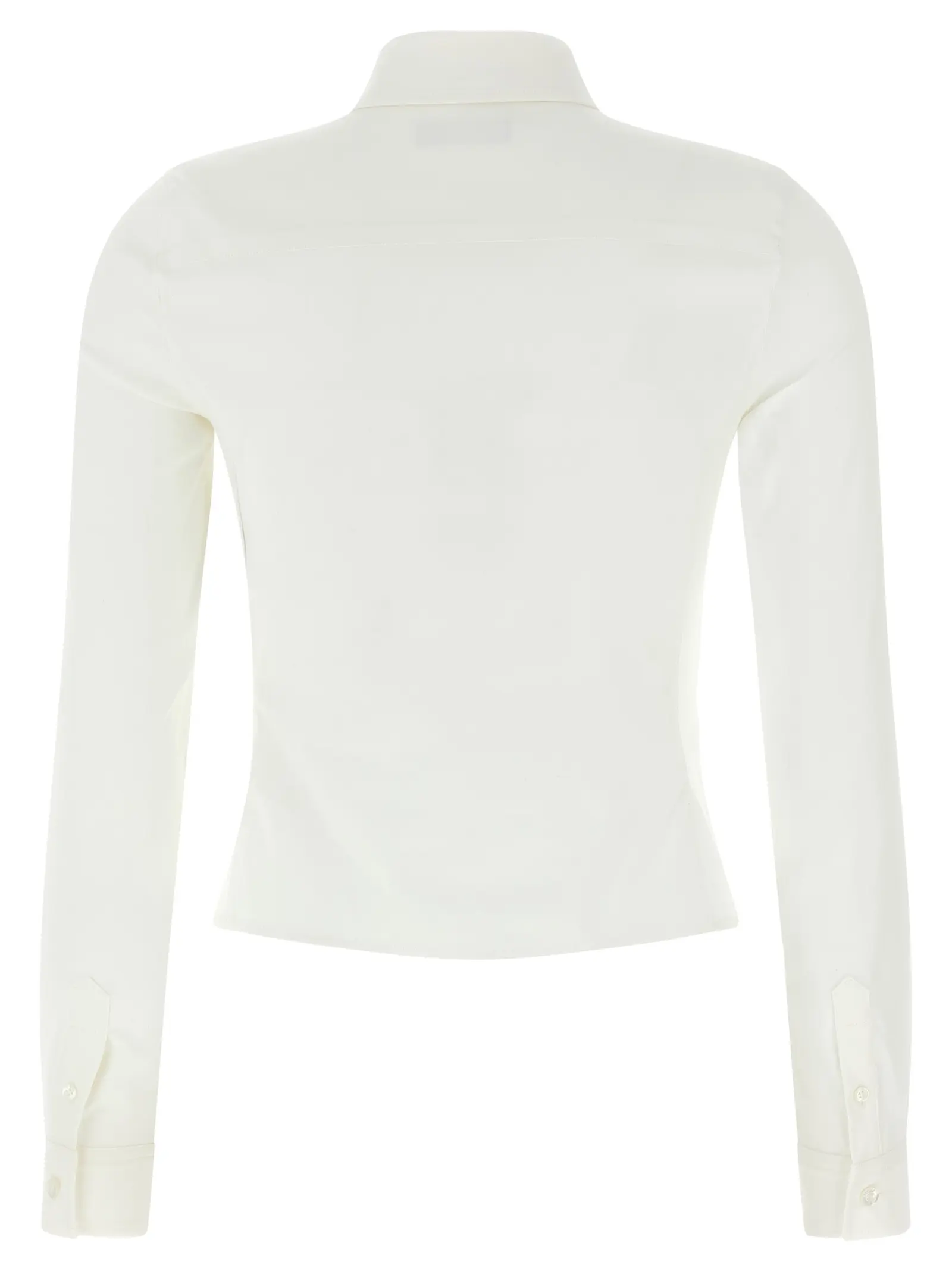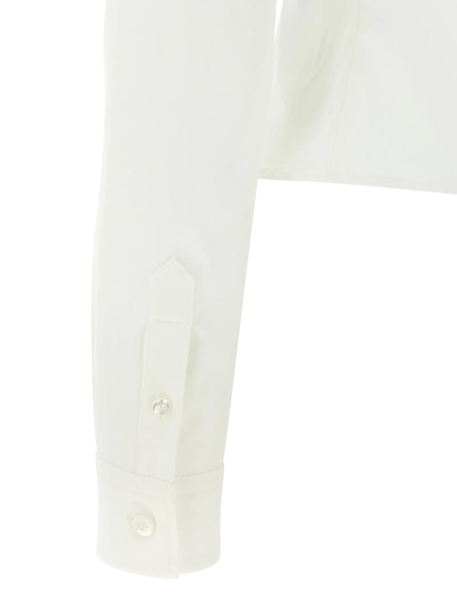 Ця жіноча сорочка з білого оксфордського бавовняного полотна поєднує в собі витонченість і інноваційний дизайн із витонченими завитками на передній частині та довгими манжетами. Виготовлена з високоякісної суміші бавовни, поліаміду та еластану, вона забезпечує комфорт, ідеальну посадку та універсальність, підкреслюючи статус і бездоганний стиль.