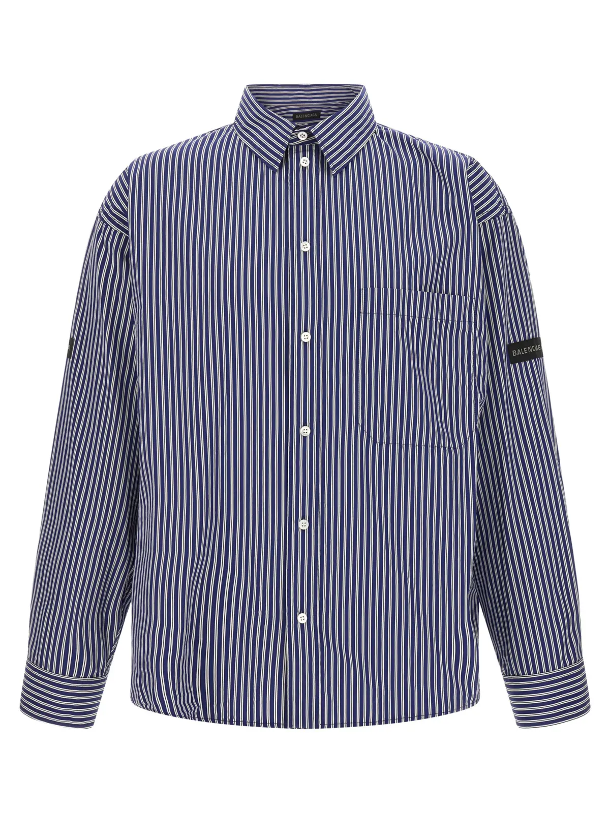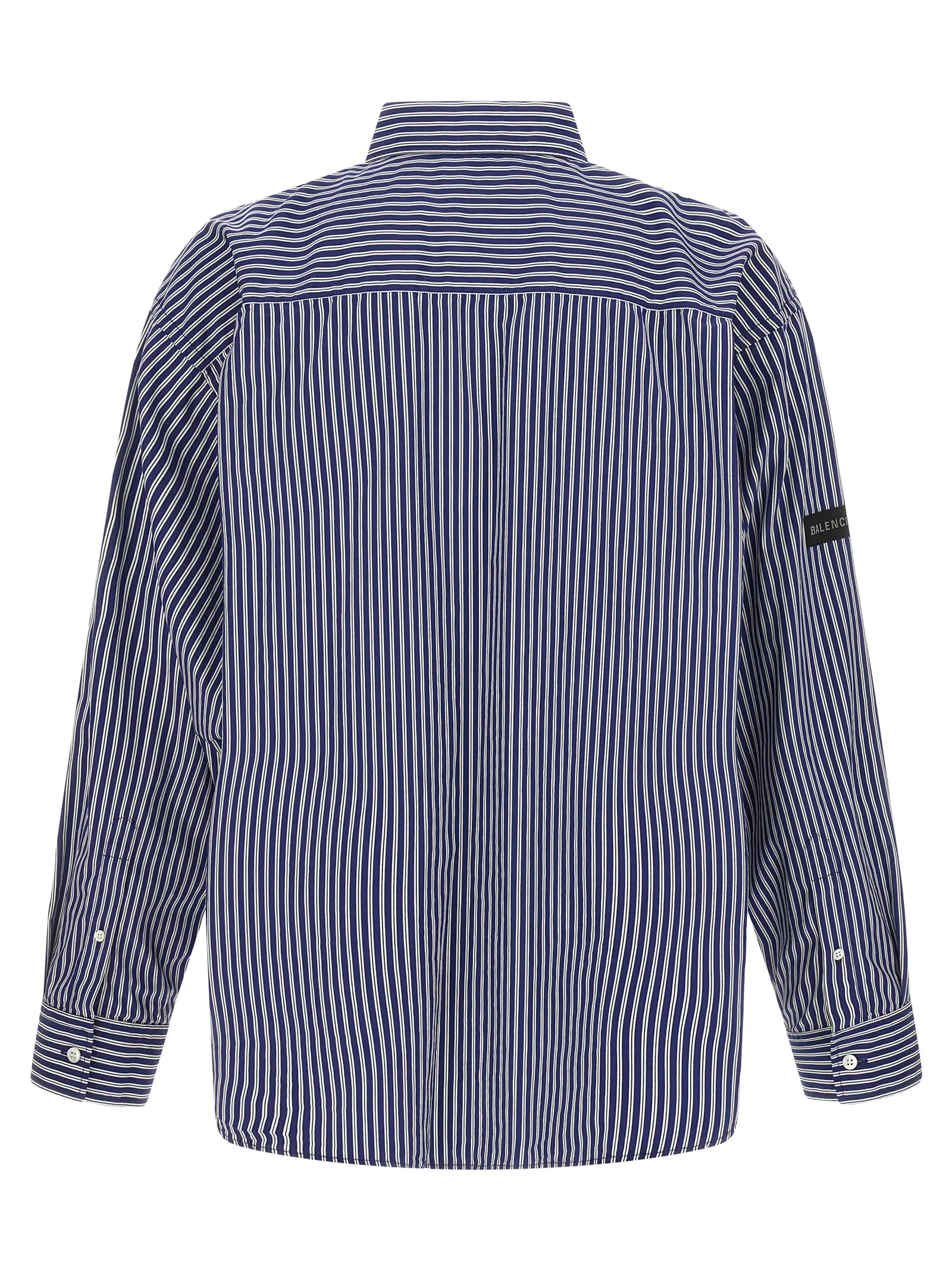 Ритмічні смужки на фактурному бавовняному попліні диктують настрій інтелектуальної розслабленості. Спущена лінія плеча створює м’яку форму, а делікатна нашивка з логотипом стає ключовим маркером стилю. Нагрудна кишеня та довгі рукави з манжетами додають конструкції змісту, наповнюючи повсякденність особливим характером та естетикою високого стилю.