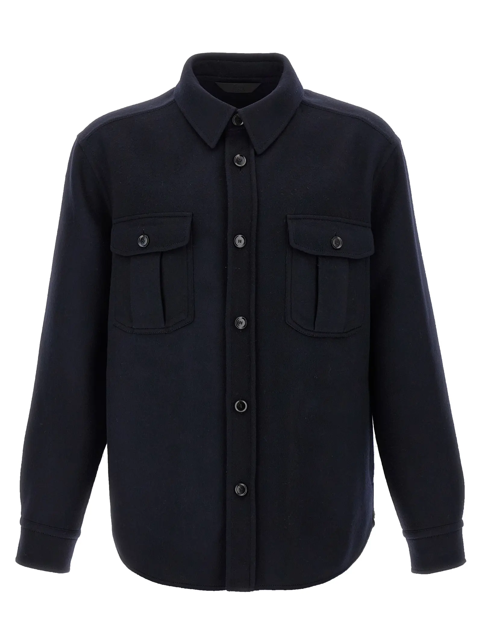 Сорочка Brioni Vagabond виконана з високоякісної суміші вовни та кашеміру, що забезпечує неймовірну м’якість і тепло. Її продуманий дизайн з довгими рукавами на манжетах, передньою застібкою на ґудзики та практичними кишенями поєднує елегантність і функціональність, підкреслюючи витончений статус і бездоганний стиль власника.
