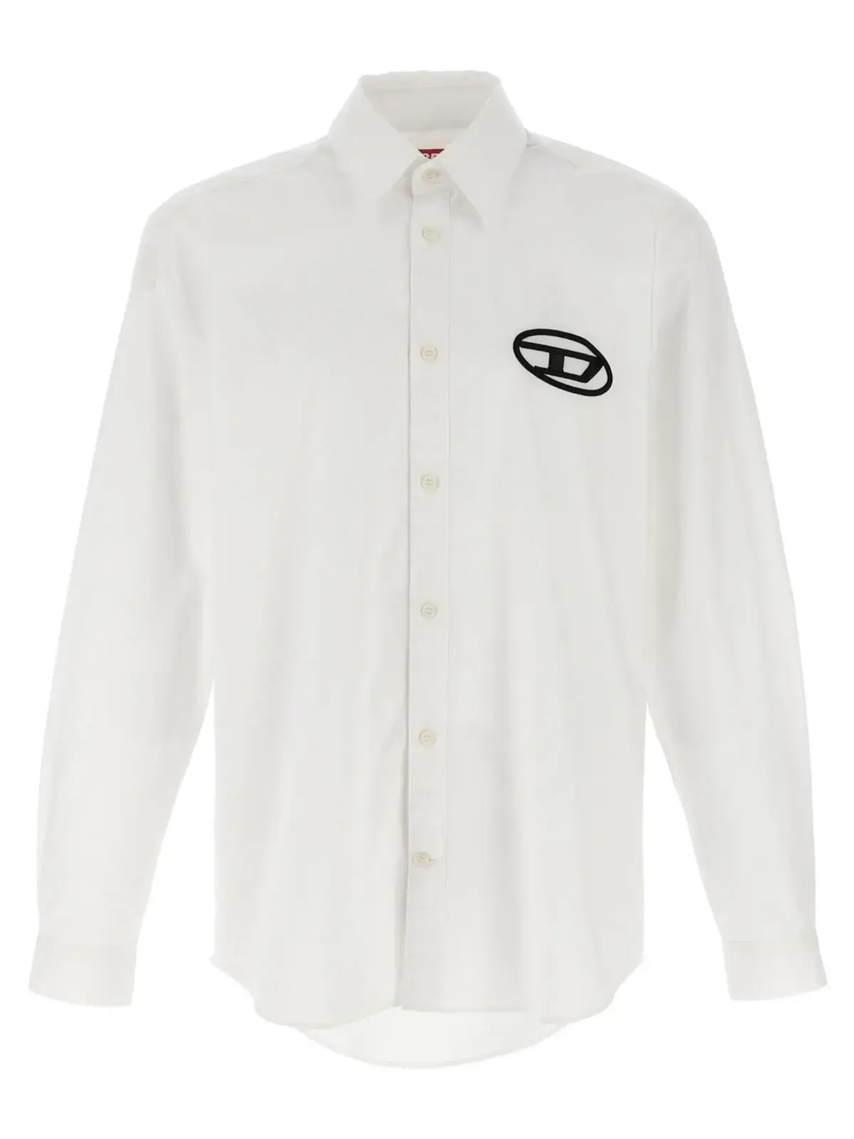 Сорочка Diesel S-Simply-D в білому кольорі виготовлена з 100% бавовни, що забезпечує комфорт та дихаючі властивості. Елегантний дизайн доповнений вишитим логотипом на передній частині та застібкою на гудзиках, що підкреслює стильний вигляд. Довгі рукави з манжетами надають виробу класичного шарму, а висока якість матеріалів свідчить про інноваційний підхід бренду. Ця сорочка є універсальним елементом гардеробу, що підкреслює статус та бездоганний смак власника.