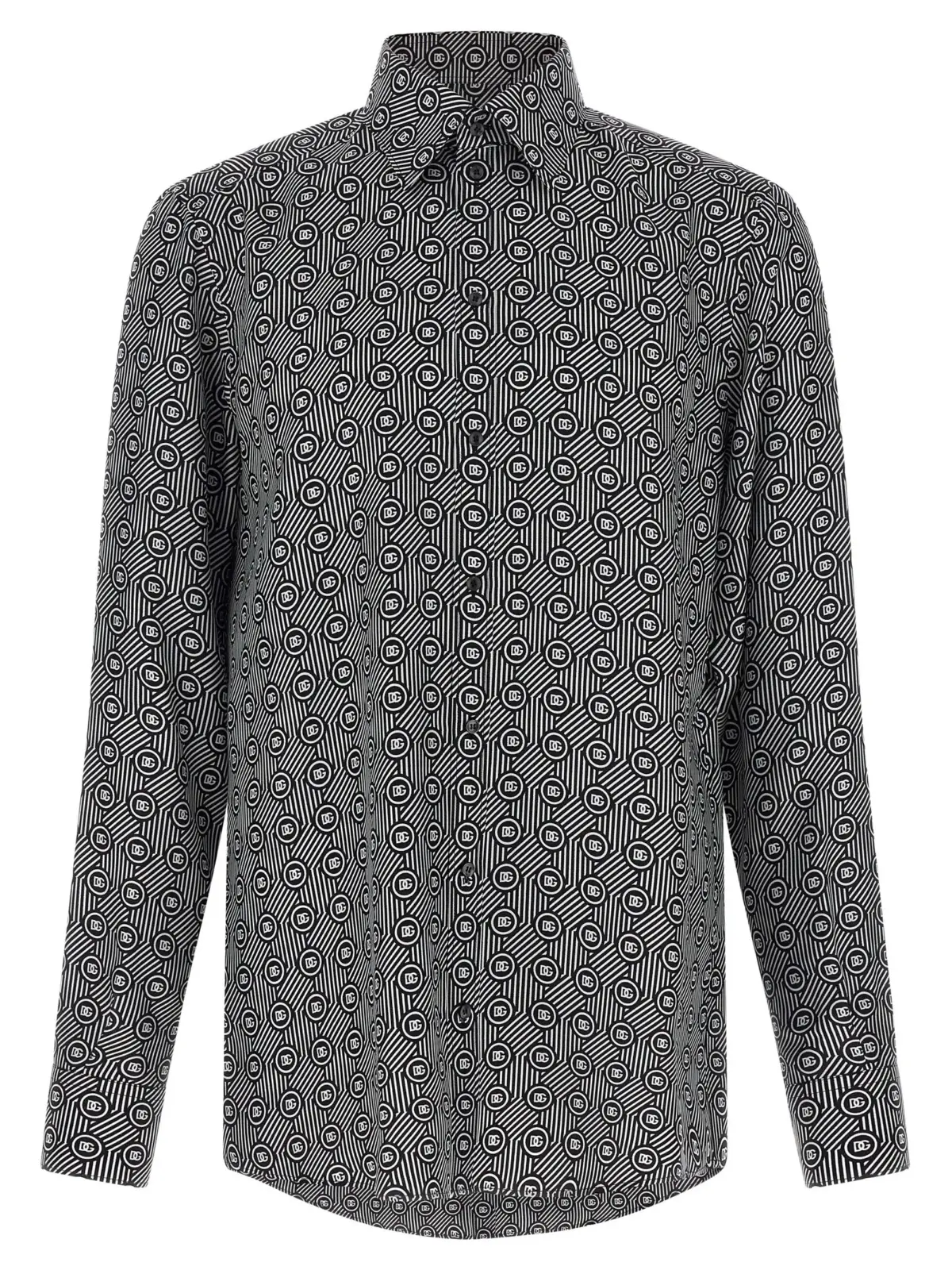 Вишукана чоловіча сорочка з колекції Private Wardrobe виконана з 100% натурального шовку, поєднуючи класичний чорний та білий кольори з унікальним логотипним та геометричним візерунком. Елегантний комір, застібка на ґудзики та манжети з запонками підкреслюють статус і бездоганний стиль, надаючи образу вишуканої інноваційності та універсальної привабливості.