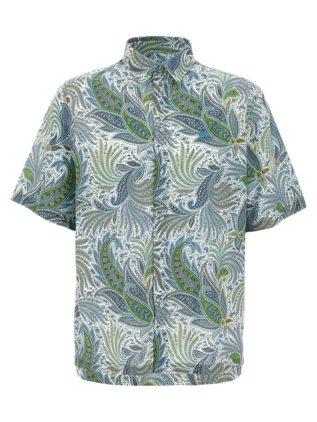 Ця сорочка Etro з багатокольоровим принтом у стилі Пейсли виготовлена з 100% бавовни, що забезпечує неймовірний комфорт та дихаючі властивості. Дизайн з максі-квітковим узором підкреслює індивідуальність та елегантність, а тонка вишивка логотипу додає нотки розкоші. Кнопкова застібка та короткі рукави роблять цю модель ідеальною для літніх зустрічей. Ця сорочка поєднує в собі високу якість, стиль і універсальність, що робить її невід’ємною частиною сучасного гардеробу.